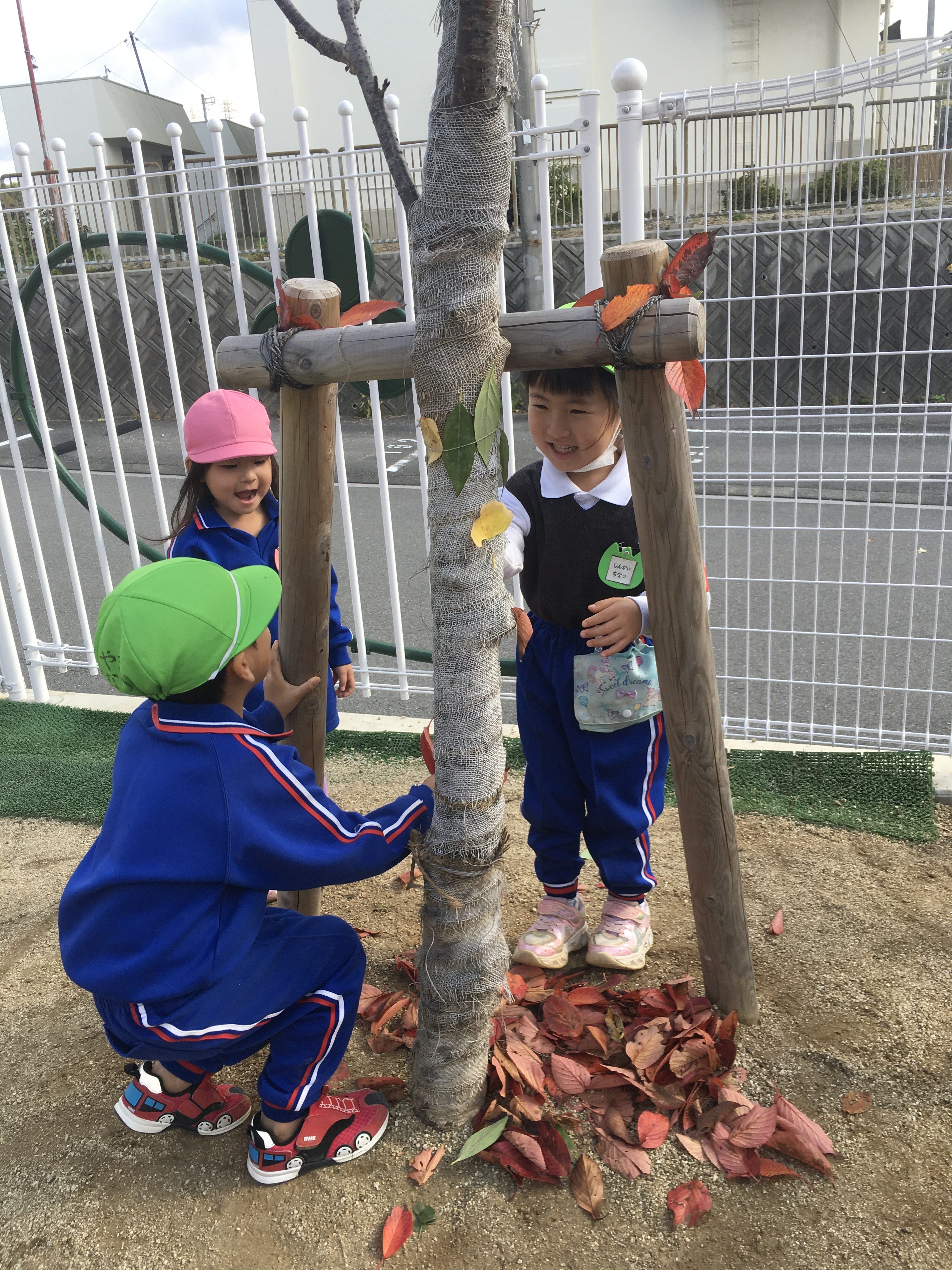 今朝も園庭は、子ども達の元気な声が響き渡って大賑わい♪それぞれのコーナーで色々な学年が関わりながら遊ぶ姿が見られました。つりかんの所では年中の女の子達が、「先生見てー‼」とすいすいとつりかんをわたる姿に見とれていると一緒に遊んでいたひまわり組の女の子も、よし行くぞ‼とやる気でつりかんを握りました。「ちょっとこわいなー。」と言いながらもはしごの所から勢いよくジャンプすることができて満足そうにしている姿がとても可愛らしく、きっとこれから少しずつ時間をかけてつりかんができるようになるんだろうなと楽しみにもなりました。