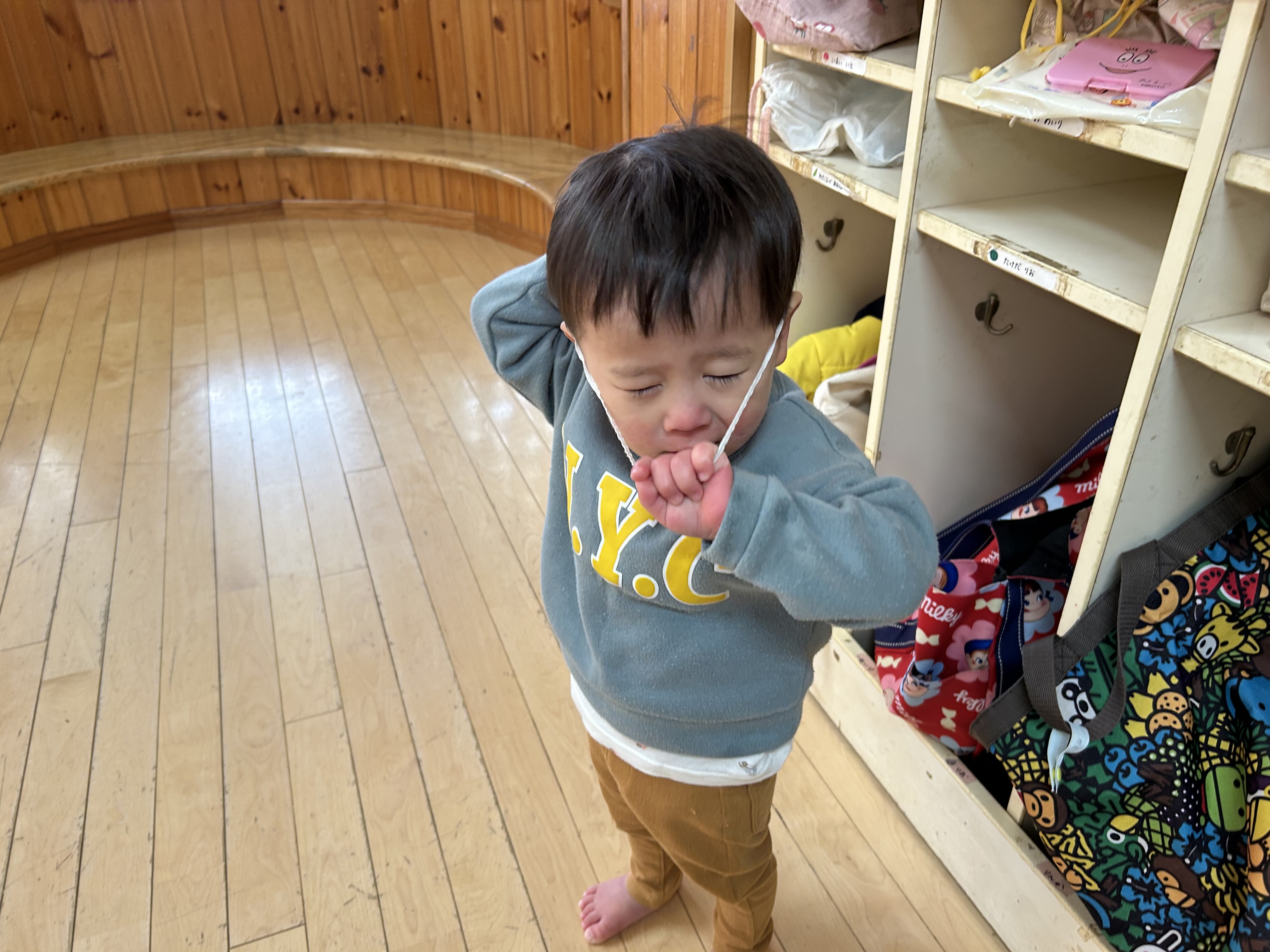 1・2歳児たちは、日々の生活の中で、色々な事に興味を示します。気になることを何度も見たり、同じ言葉を繰り返したりしながら、学び、覚えて身についていくのです、私たちはその一歩を見逃さず、手助けをしながら、成長する様子を見守っていきたいと思います。