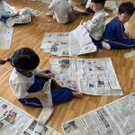 すみれ組では、部屋で新聞遊びをしました。新聞を細長く破って長いヘビを作っていたのですが、ちぎれずに長く破るコツをつかんだ子は「こんなに長くできた!」と喜んでいました。みんなでどれぐらい長いへビができたか並べて見比べたり、競走したりしました。ルールがある遊びも少しずつ理解をして仲良く遊べるようになってきています。園庭も保育室も十分広いのでみんなで沢山遊んでいきたいです。