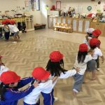「焼き芋グーチーパー」を楽しみながらジャンケンの勝ち負けが少しずつ理解できて来たちゅうりっぷ組さん。みんなで降園前にジャンケン列車をしました。負けたことが悔しくてすぐには納得できない子もいましたが、一人の列車が二人になり、四人になり段々と長くなる事が嬉しくて勝ち負けがあるからこそできるゲームだと理解しつつ、最終的には全員で長い列車ができました。個々の思いを受け止めながら、これからも集団ゲームを楽しんでいこうと思います。