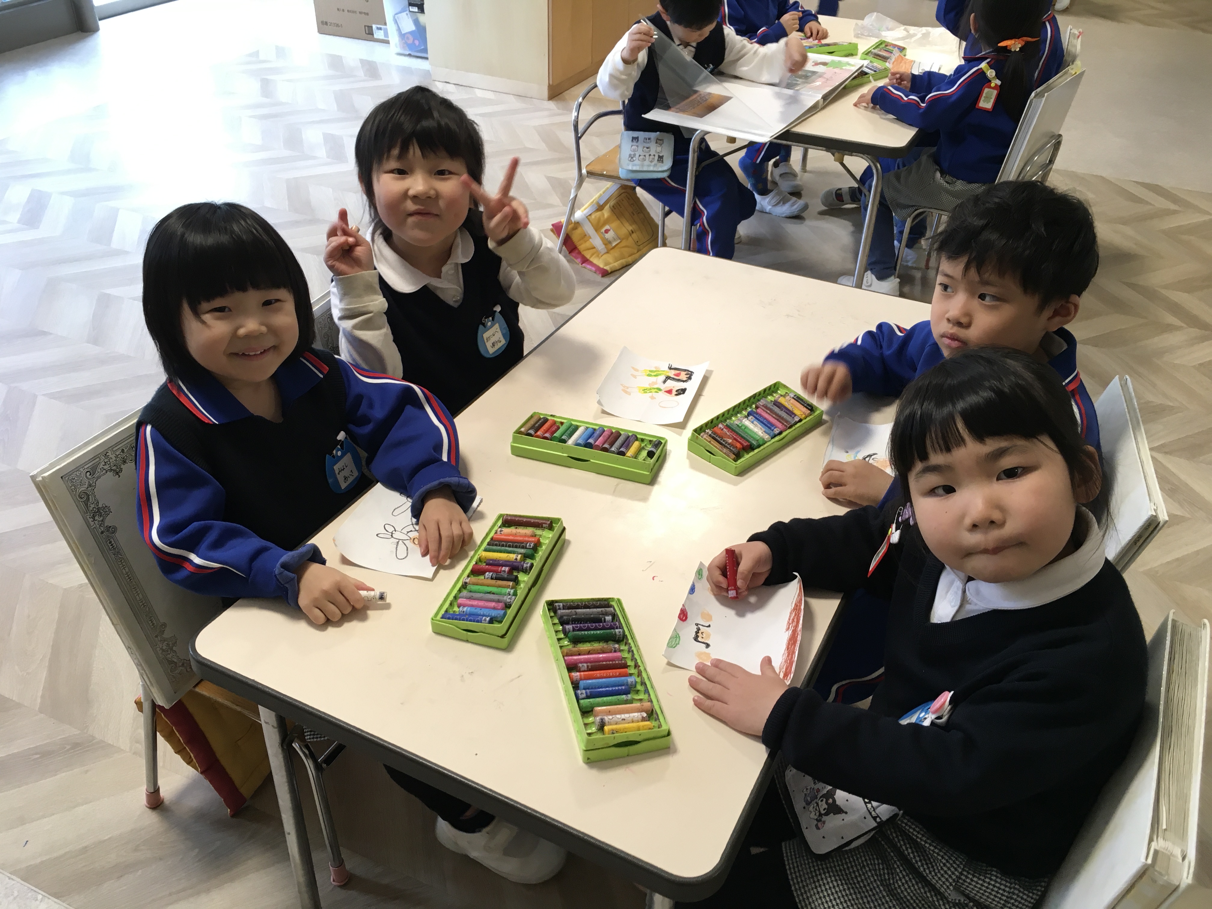 昼食前、降園前には年中さんは年長さんに内緒ですすめているあるもの?をプレ、年少さんにも協力してもらう為に届けに行きました。当日の年長さんの反応が楽しみです!!