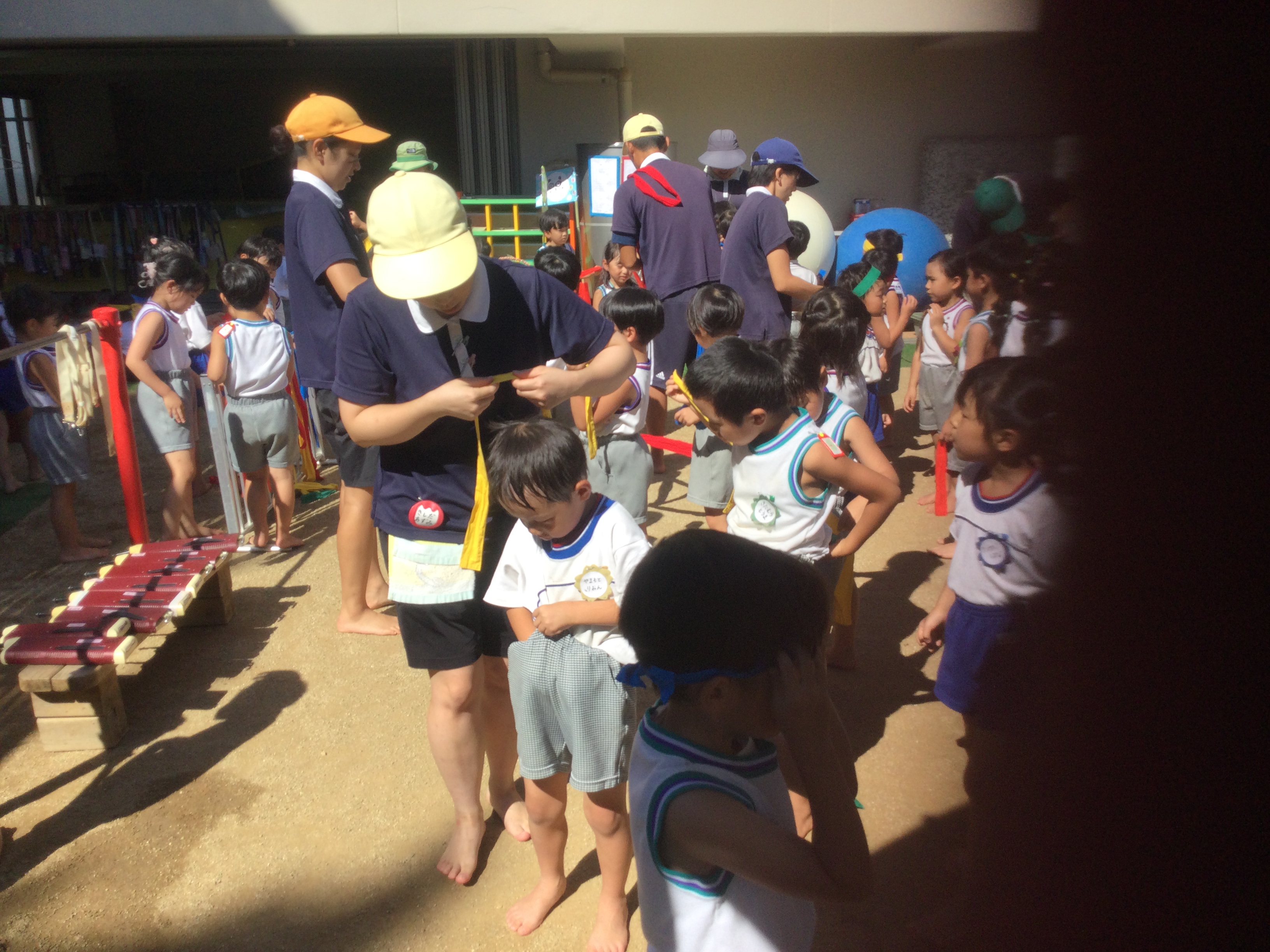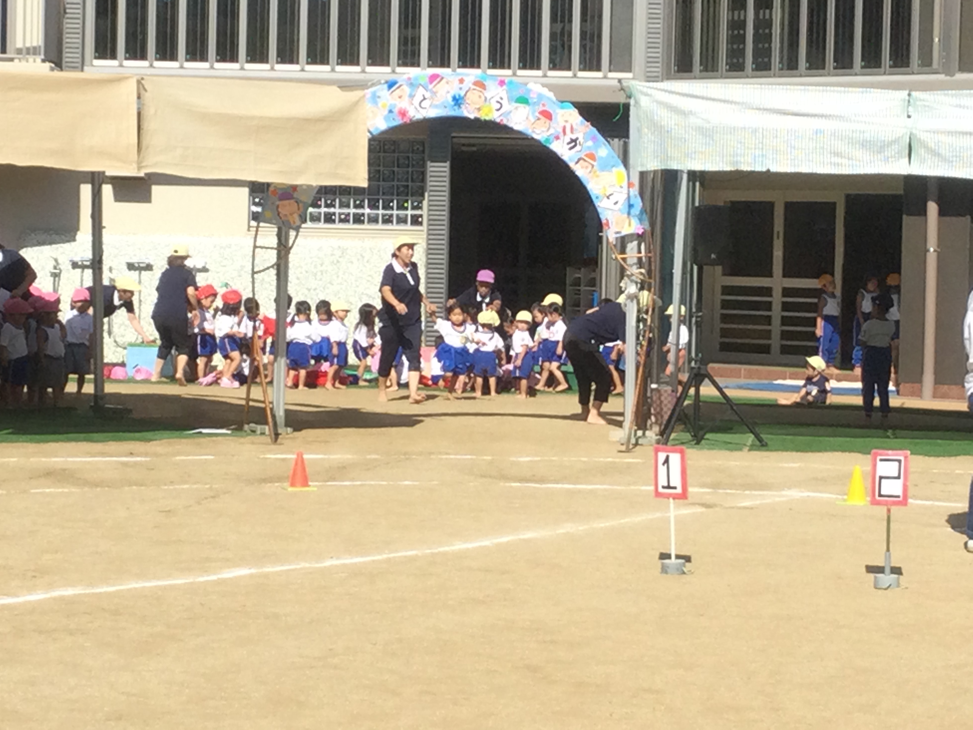 そして見ている側の子ども達、最初は自然と競技している友達を応援していたのですが、時間が経つにつれ立ったり、どこかに行ったり…それを他の先生が気付いて連れてきてくれ、本当に教師一人でしていないのだと感じました。教師達が助け合って運動会を盛り上げていっているんだと感じました。だからこそ教師同士お互い声を掛け合って、運動会を盛り上げていくことの大切さを実感した1日でした。