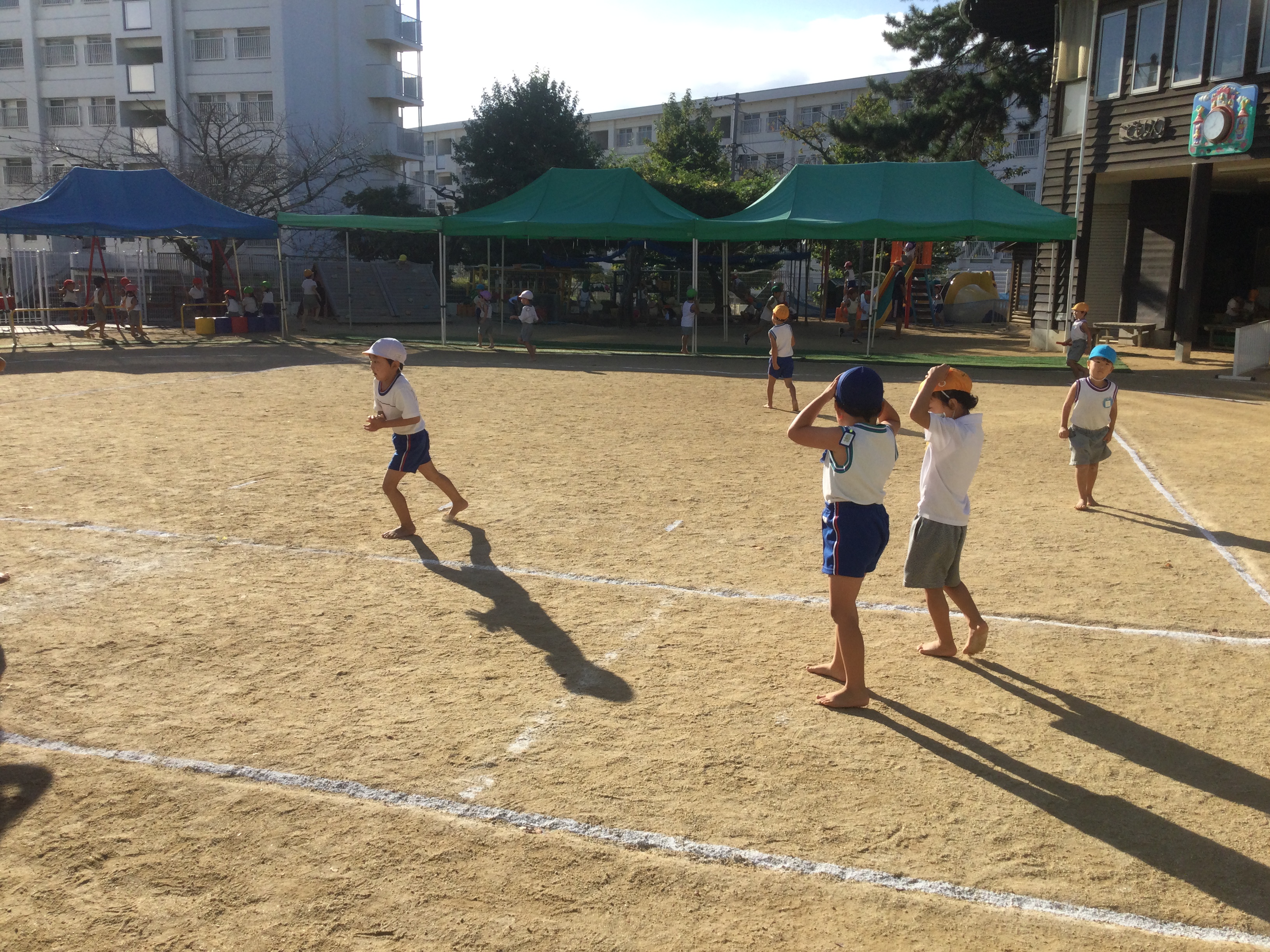 子ども達が登園して、園庭に出てくると、誰からともなく、自然とリレーが始まり、年長児は鼓笛隊の練習が始めていました。最初は人数が数人だったのですが、「年長さん 鼓笛隊の練習しませんか?したい人 集まれ」と言う子ども達の呼びかけで沢山の年長児が集まってきました。