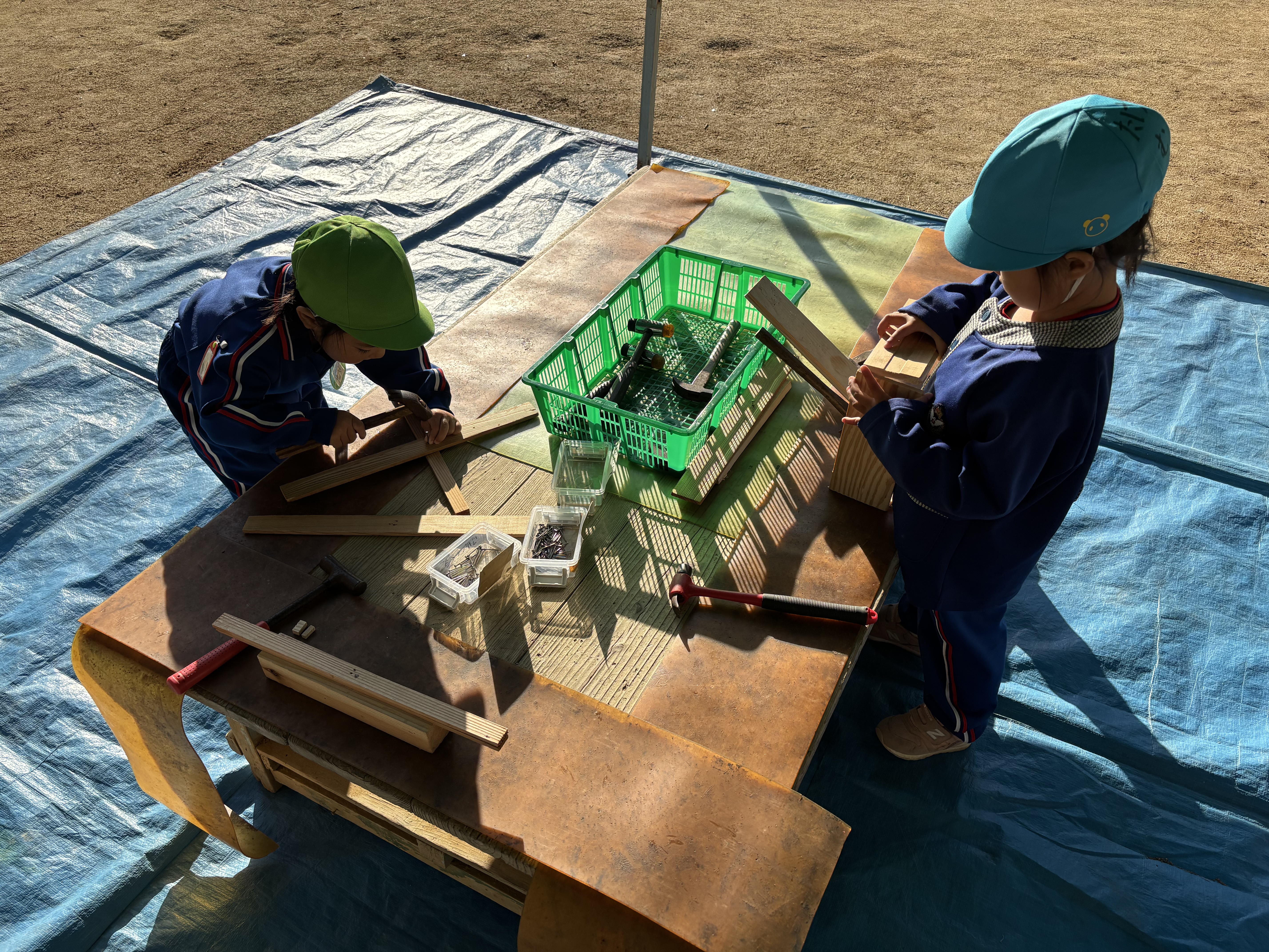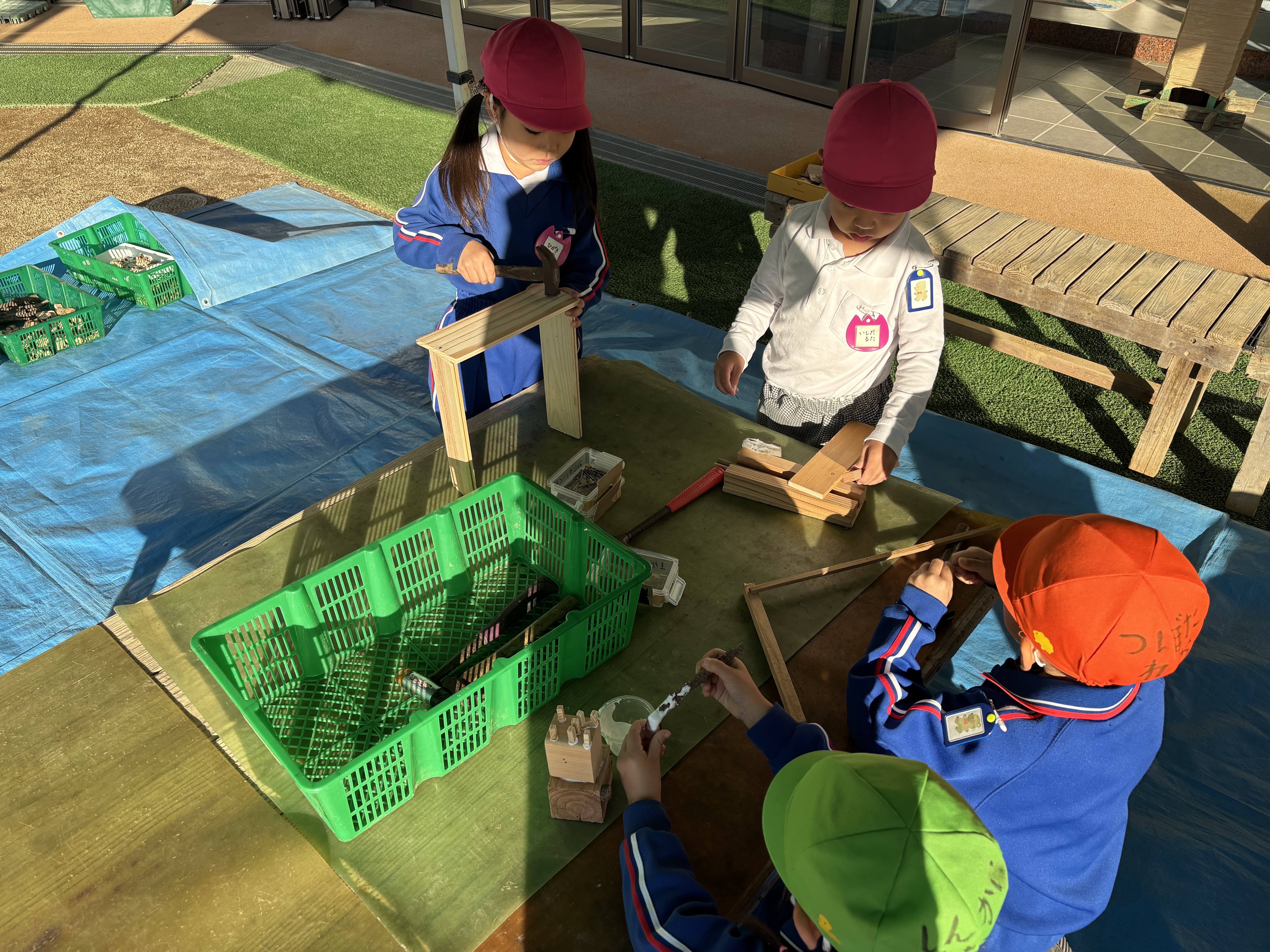 トントントン♪とリズムよく聞こえる金槌の音!年中児達はこの1週間でとーっても木工が上手になりました。
