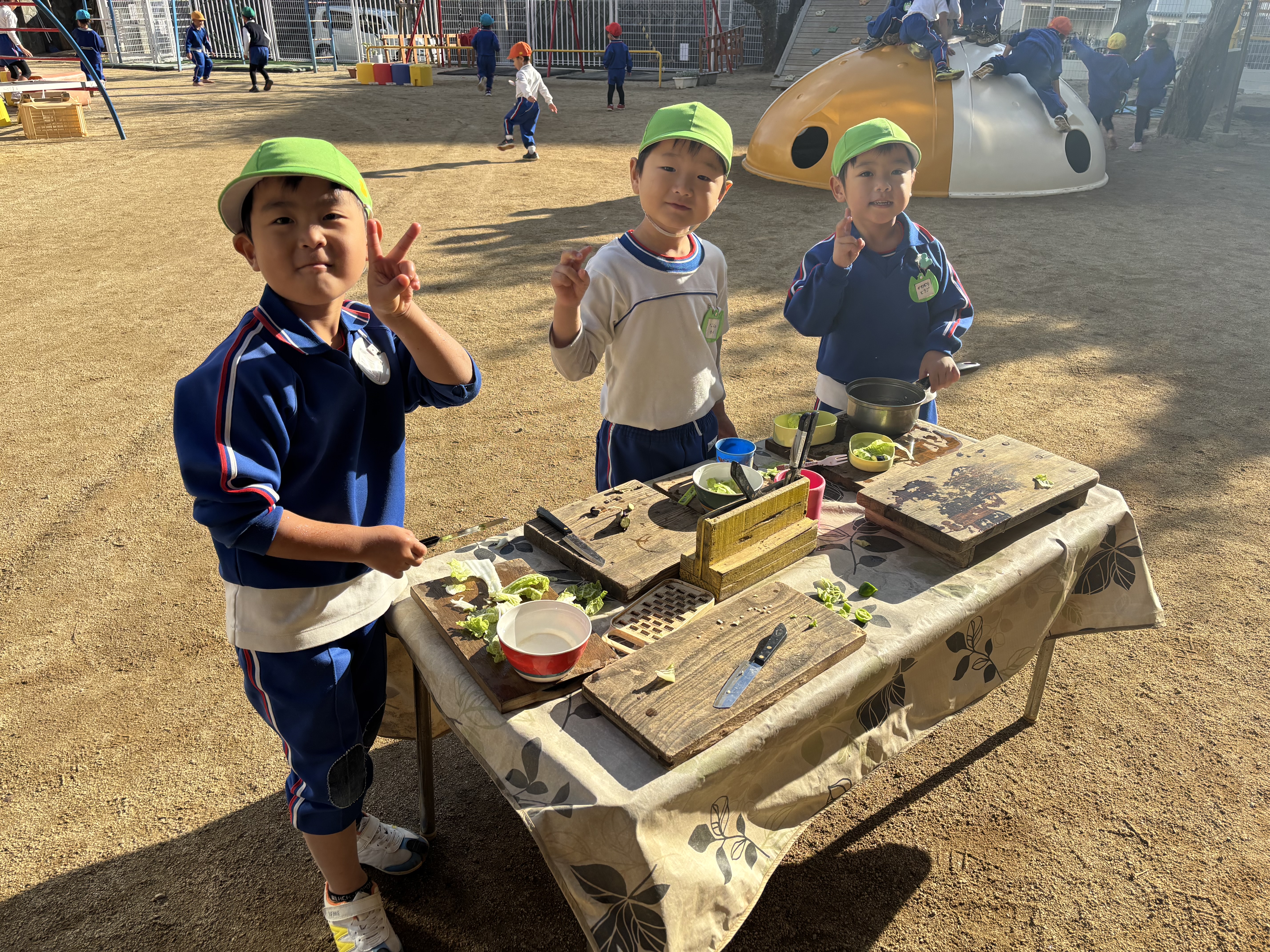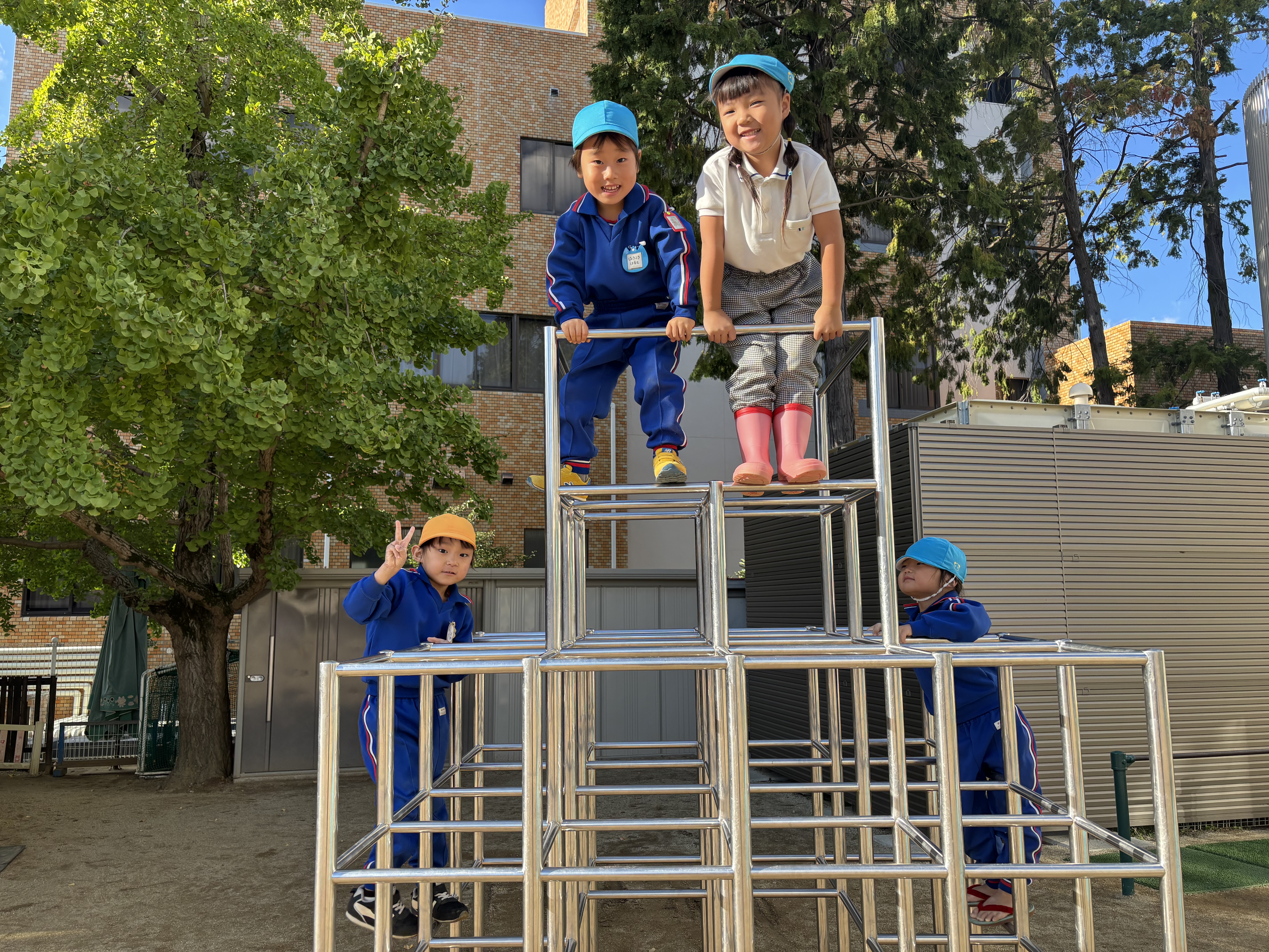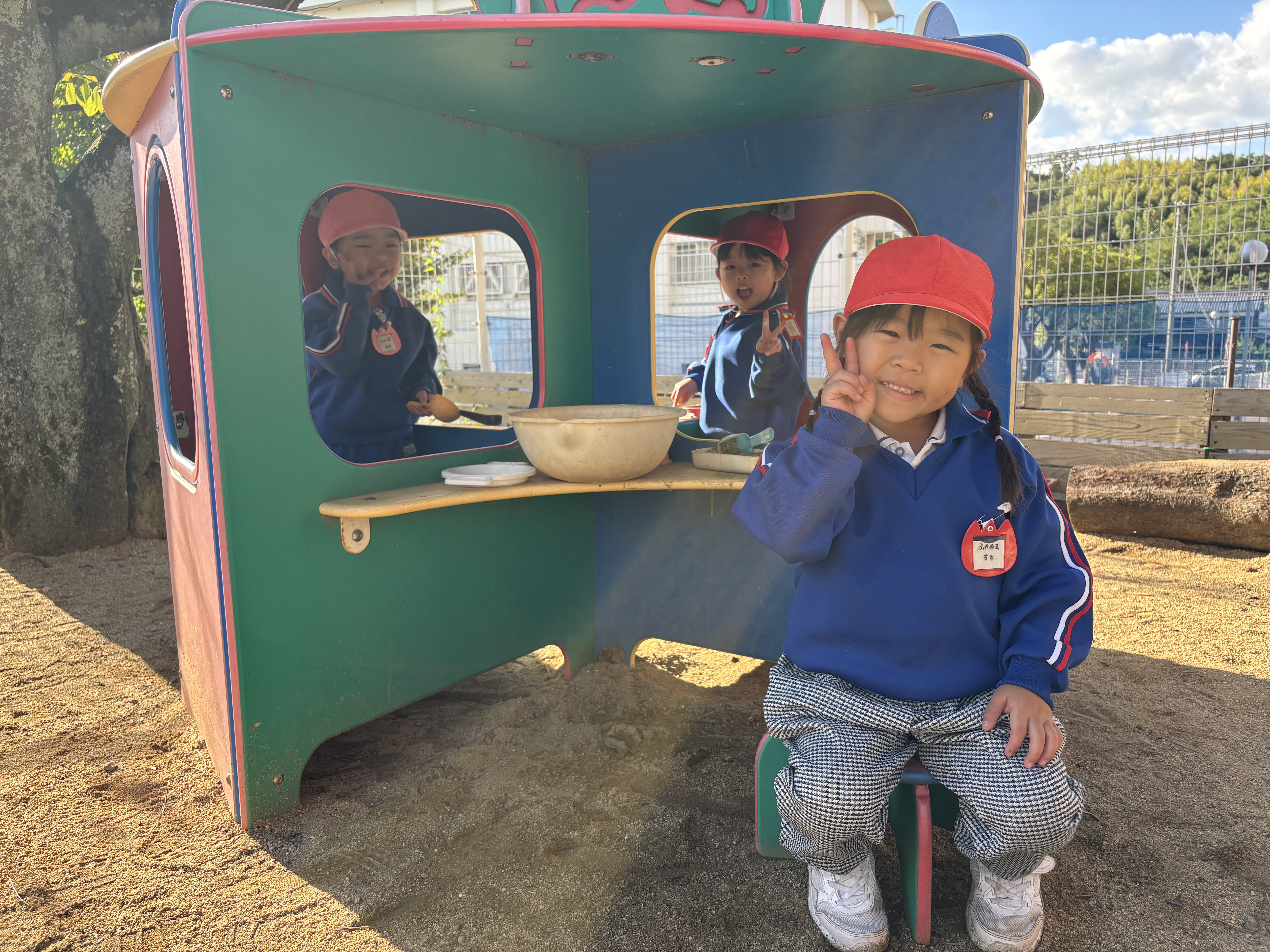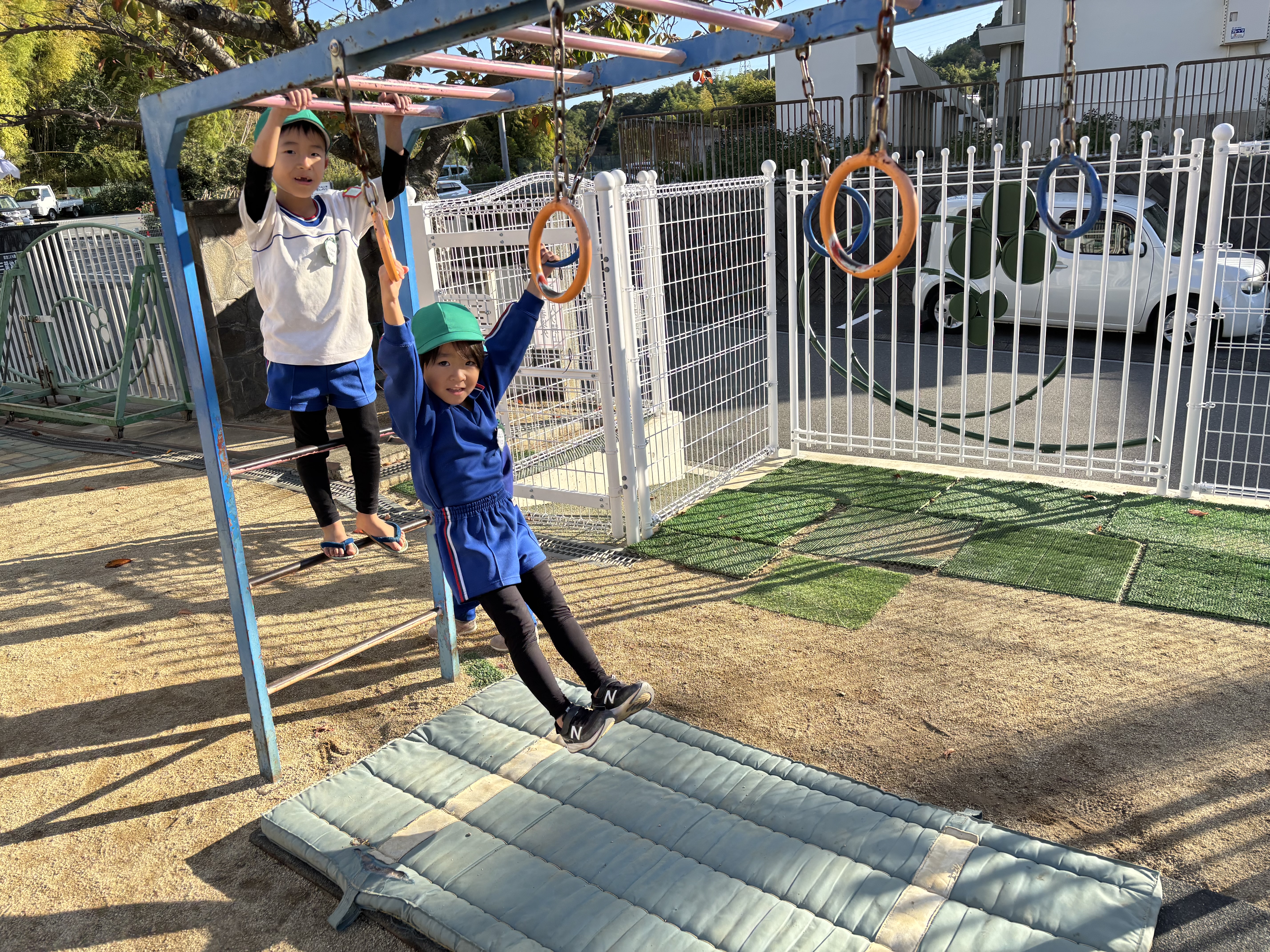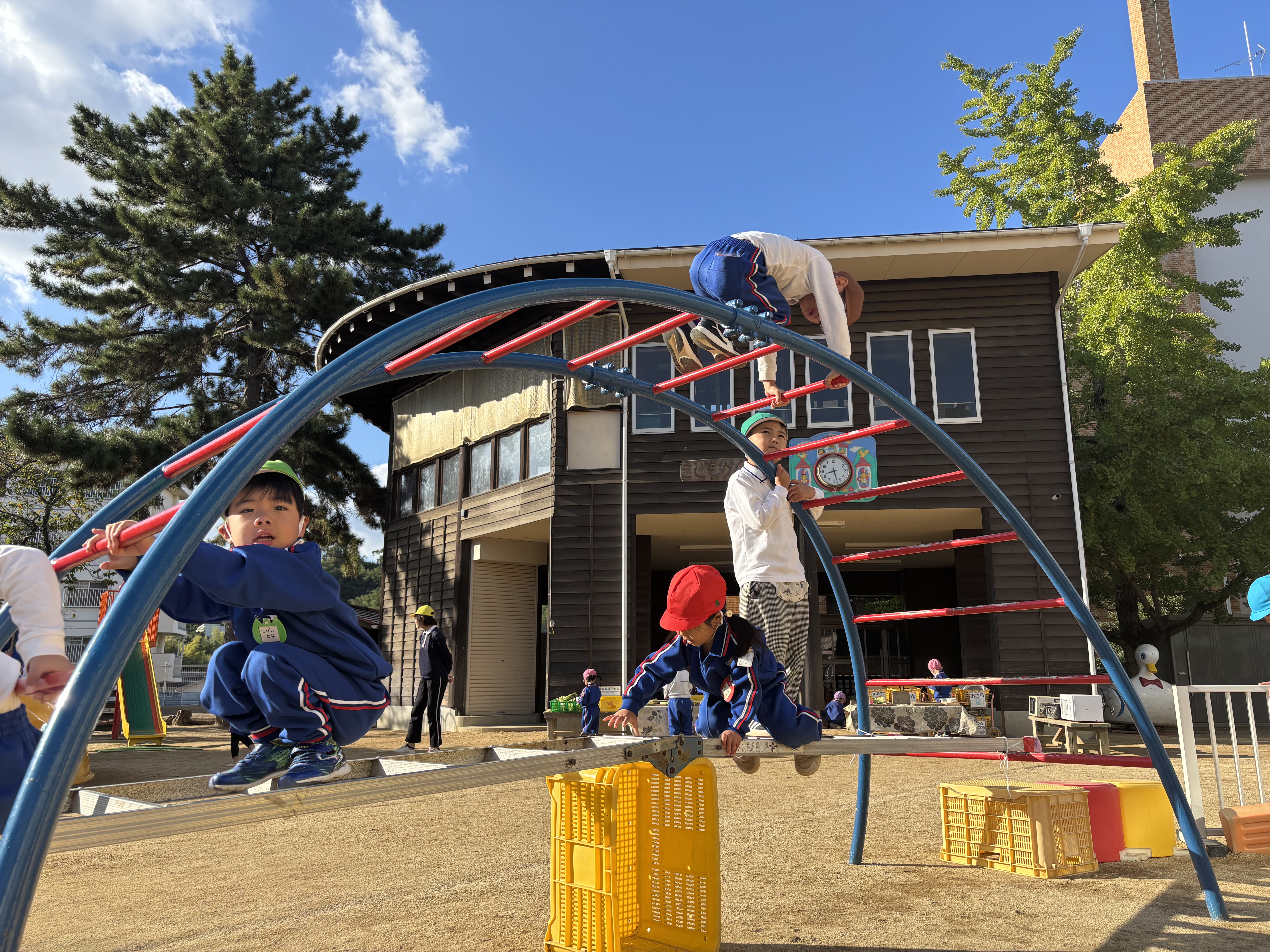 とっても気持ちの良い朝でした。暑くもなく寒くもなく遊ぶにはとってもいい気候です!子どもたちはアスレチックにジャングルジム、ままごとと好きな遊びを楽しんでいます。