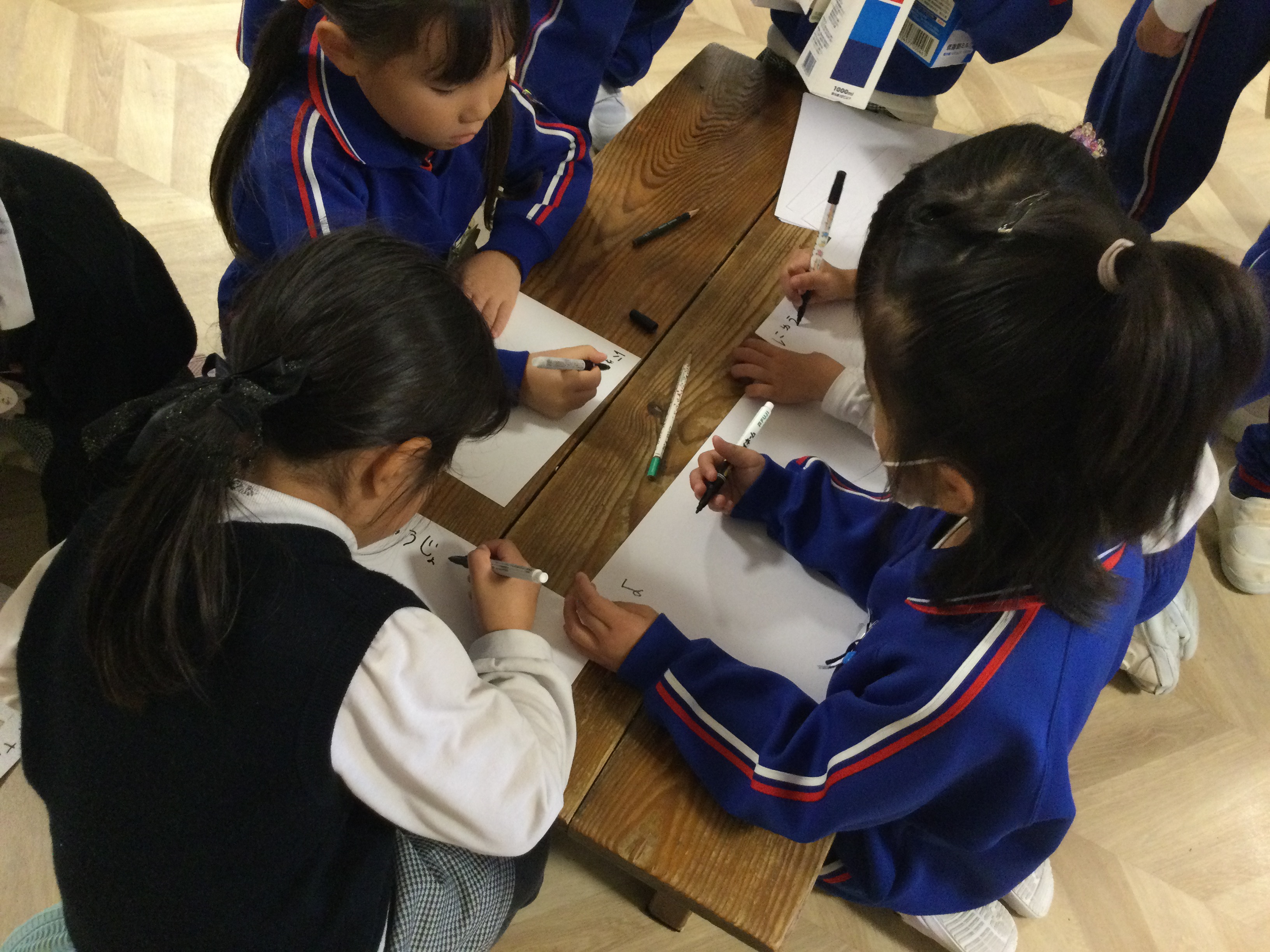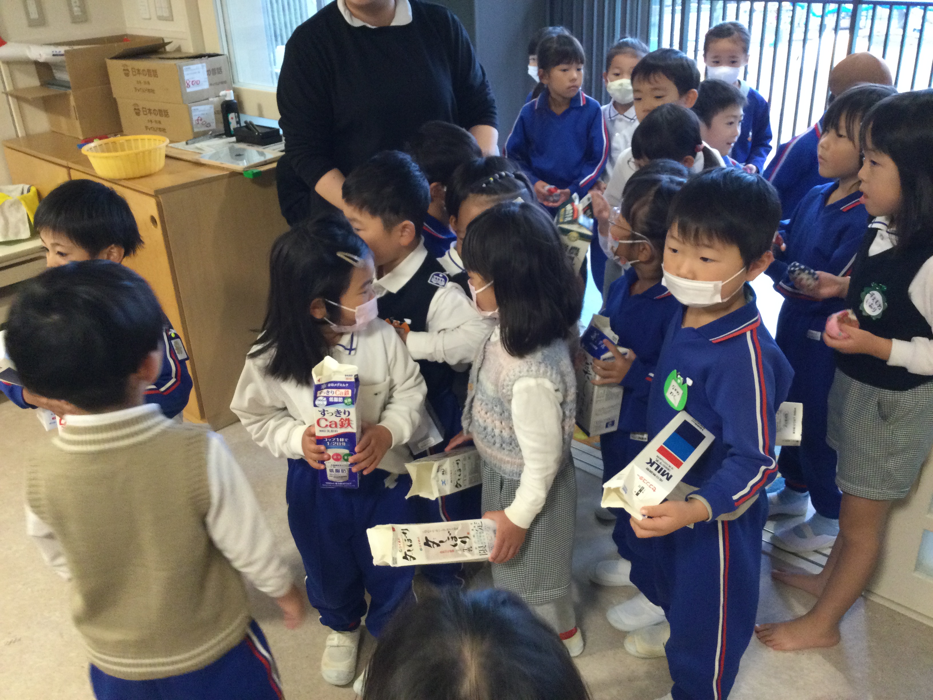 その後、年長は作品展の協同作品(共同ではありません。4クラスの子達全員参加なので)の仕上げを行いました。たくさんの牛乳パックが欲しいと放送で呼びかけていたので、今日もいろんな学年の子が持って来てくれました。牛乳パックを持って来てくれた子には、もれなく年長児手作りの入場券を渡します。足りなくなると、「入場券作らなきゃ」と、女の子たちは大急ぎで作ります。もらった年中さんは、とっても大切そうに握りしめ、部屋に帰っていました。