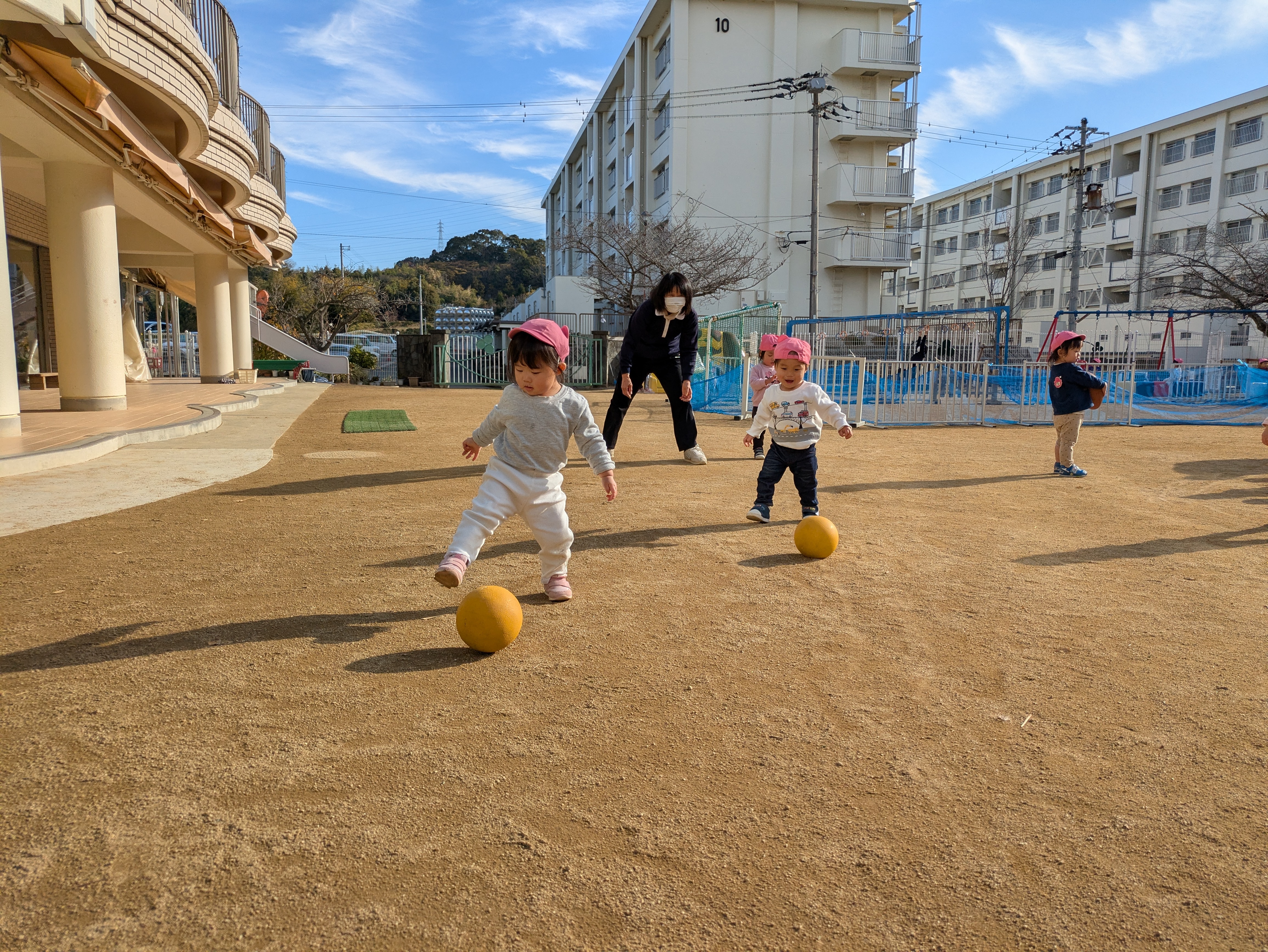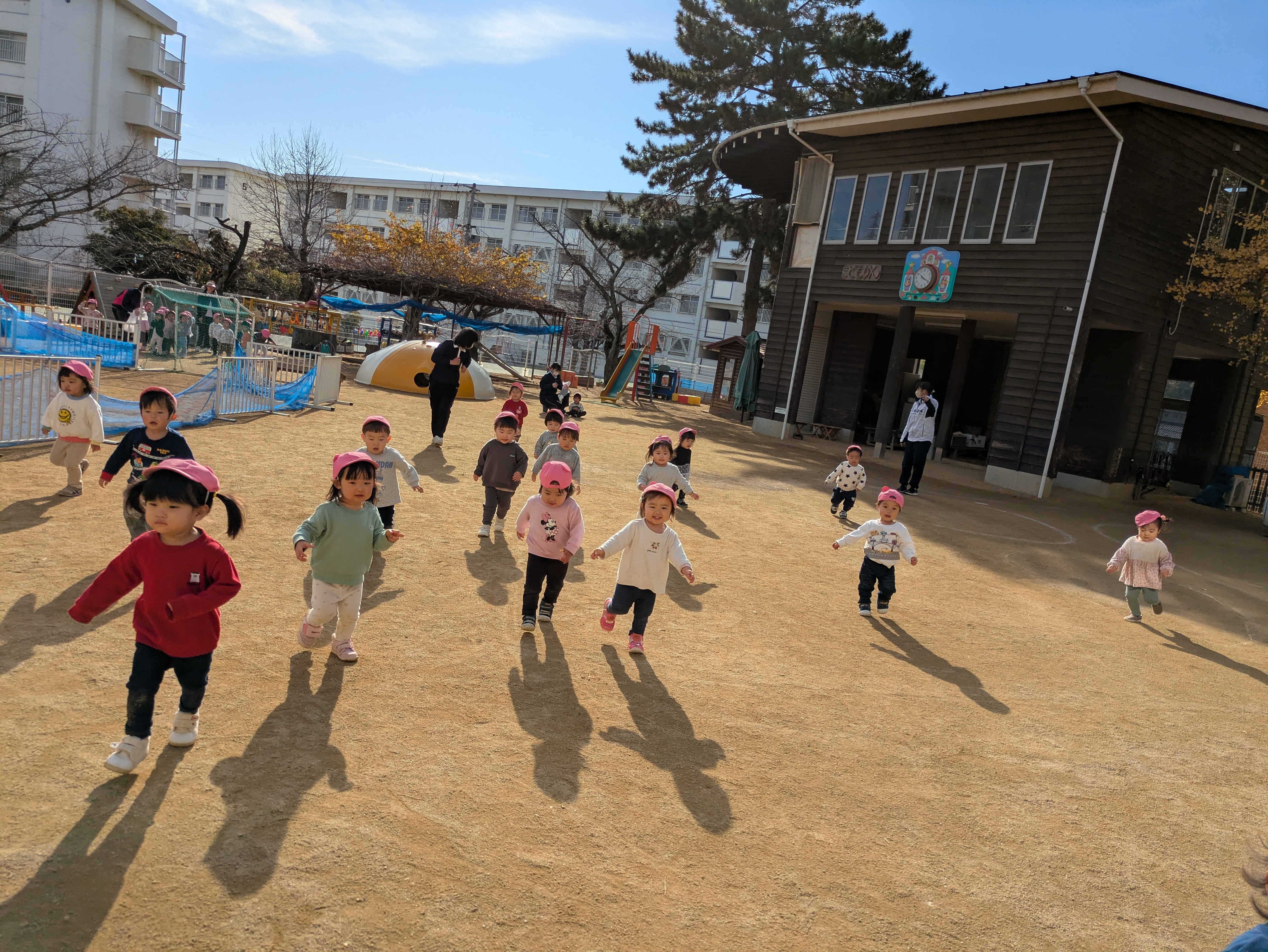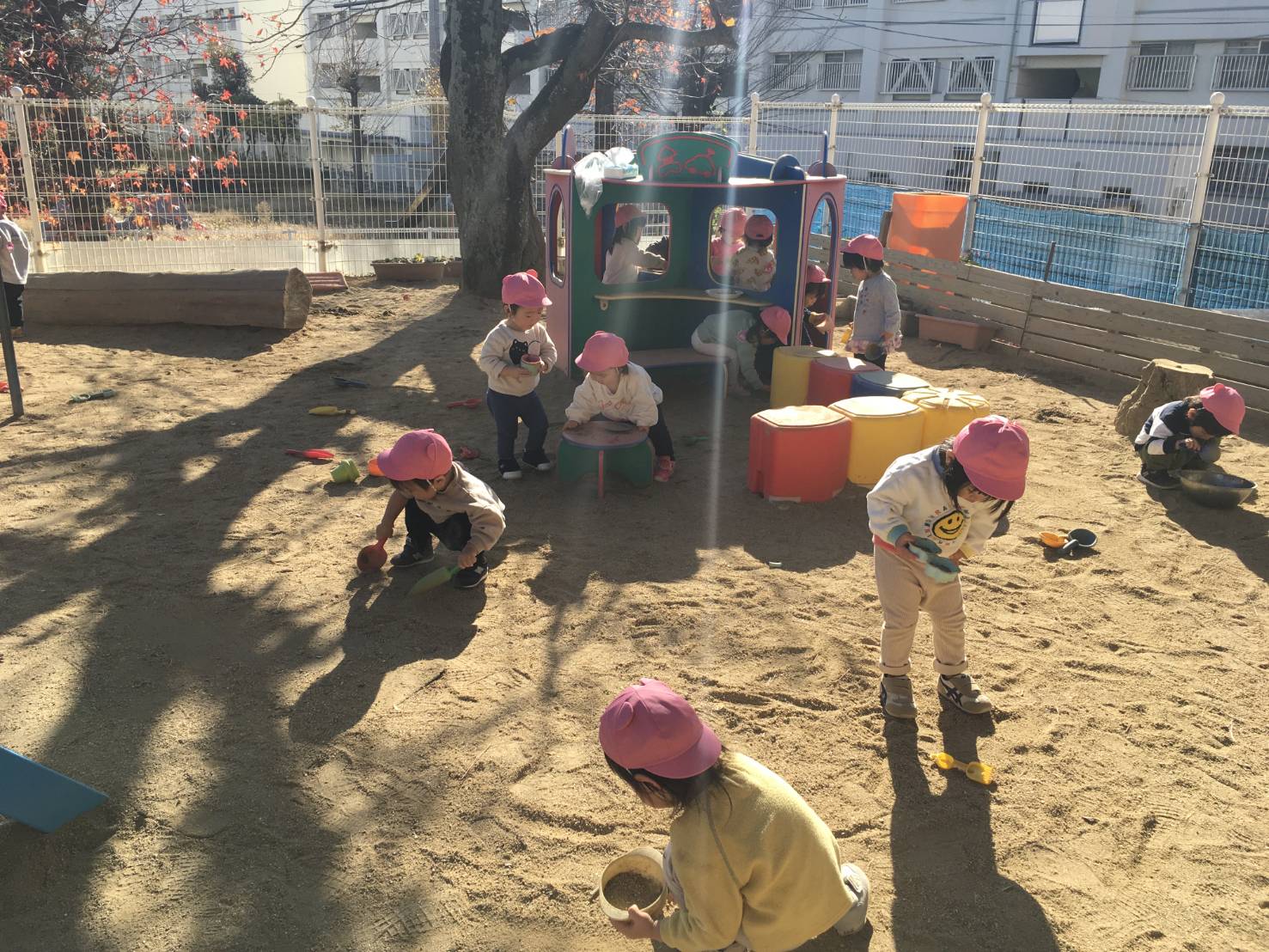 本格的な冬を感じる季節になりましたが、みかん組はお休みする子も少なく、元気いっぱい登園してきています。3階会議室では陽がよく差し込み、ぽかぽかとあたたかさを感じながら過ごしています。先週は園庭でも陽がよく当たる場所で遊ぶことができました。砂遊びをしたり、うさぎ小屋をのぞいたり、犬のすべり台をすべるなど、思い思いに楽しんでいました。