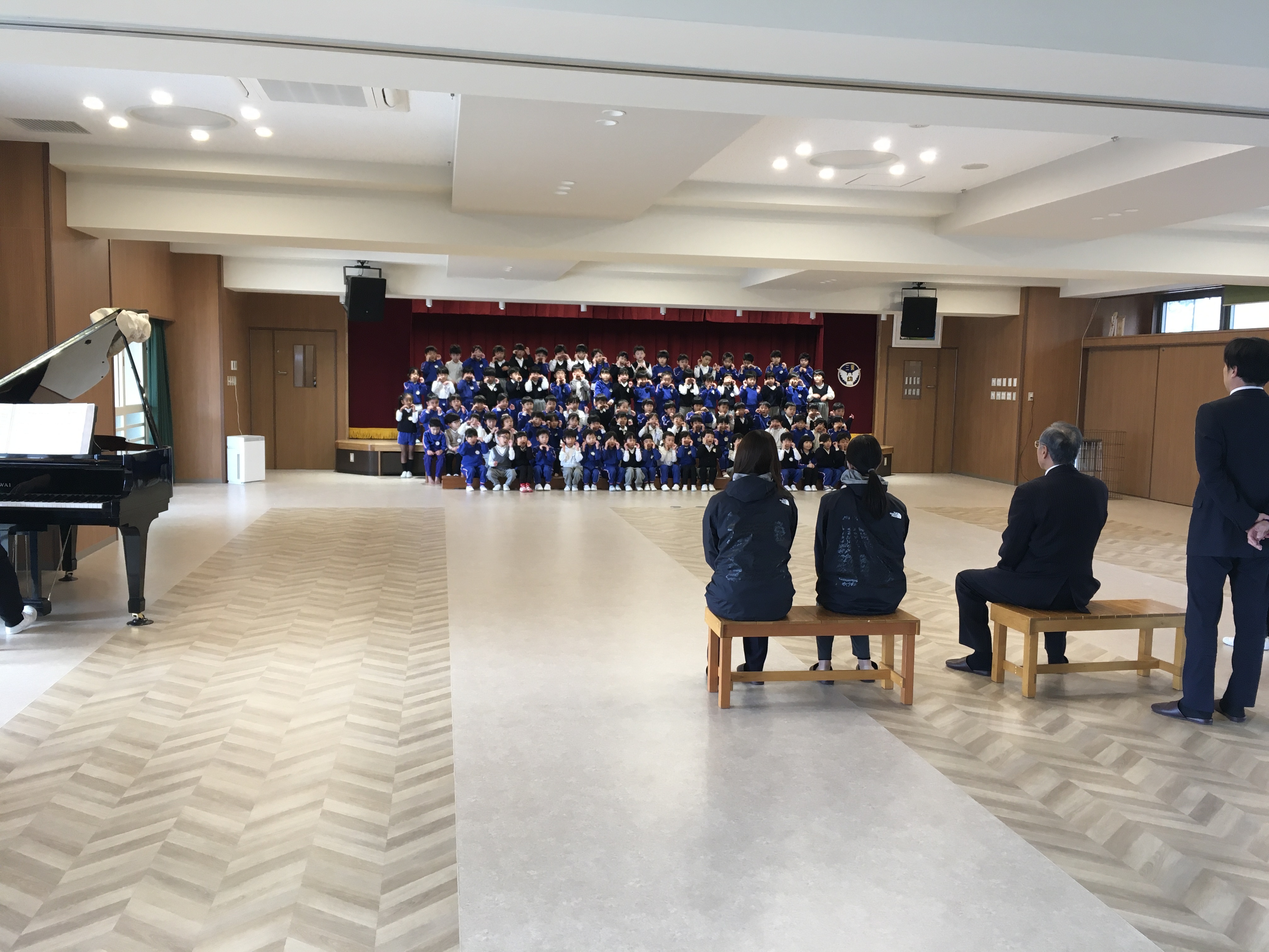 その後、年長児は今週末にある卒園DVD撮影に向けて練習を行いました。以前の練習で、歌う時は少しだけ上を向いて歌うと綺麗な声になると教えてもらっていた子ども達は、きちんと意識して練習していました。さらに「笑顔で優しい気持ちで歌うともっと綺麗な声になるよ」と、古森先生に教えてもらって、子ども達は終始、とってもニコニコで歌いながら手話をしていました。そして今日は特別に、用事で来ていたお客さんにも聞いてもらい、歌が終わった後「どうでしたか?」と聞くと、「とっても上手で、可愛いくて、心が温かくなりました!」と褒めて頂きました。お客さんに褒められたのがとっても嬉しくて子どもたちは、ニコニコで増々上手に歌えるようになっていました。明日が最後の練習になるので、教えてもらったことを意識して歌えるよう援助したいと思います。