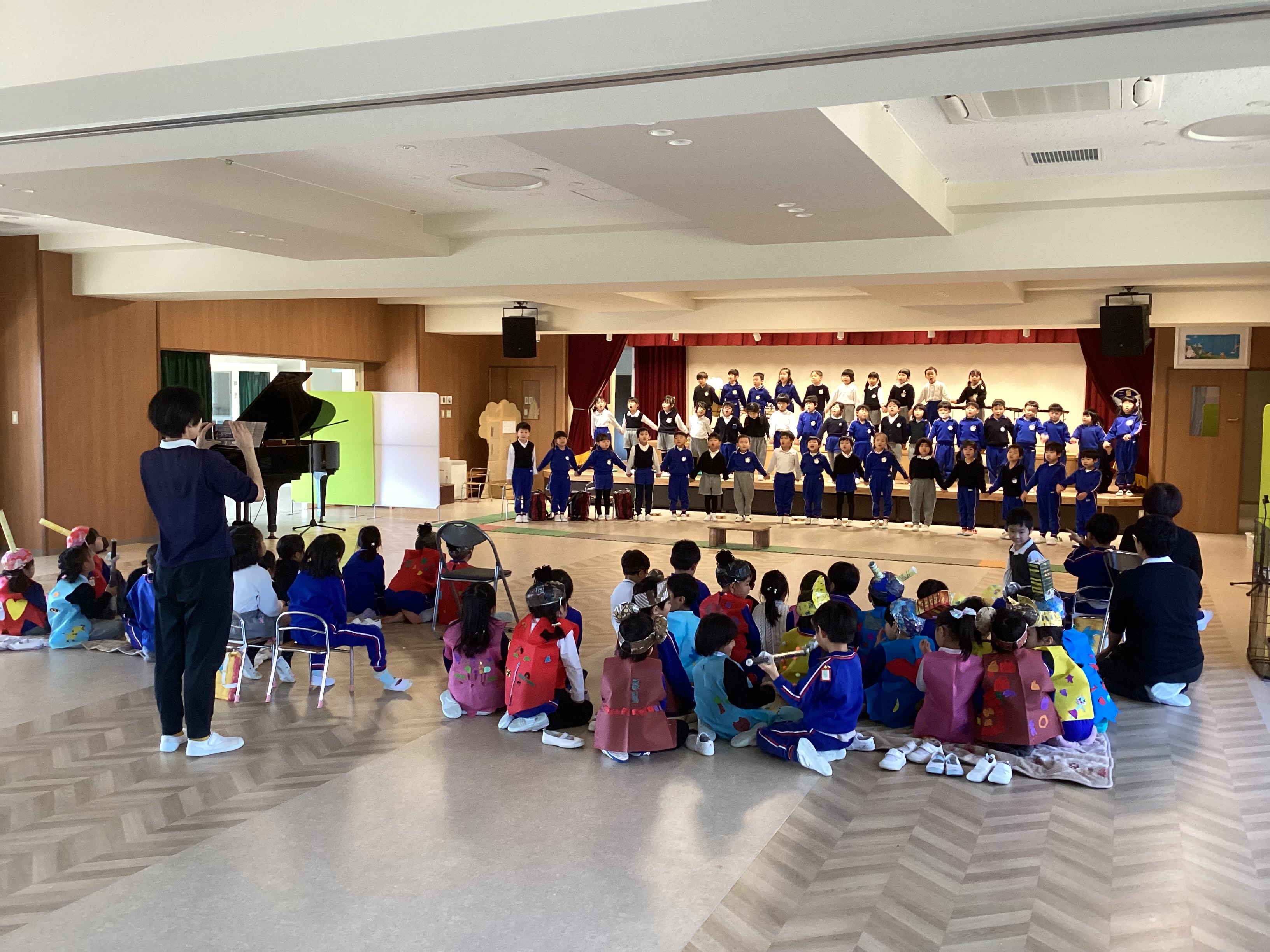 三葉幼稚園の発表会は、綺麗な形を目指す舞台ではありません。舞台の上は子どもたちのもの。ハプニングが起きても、それをどう乗り越えるのか、その瞬間の姿こそが生きる力です。教師はついつい手や口を出したくなりますが、できるだけ子どもたちの力を信じ、見守ることを大切にしたいと思います。