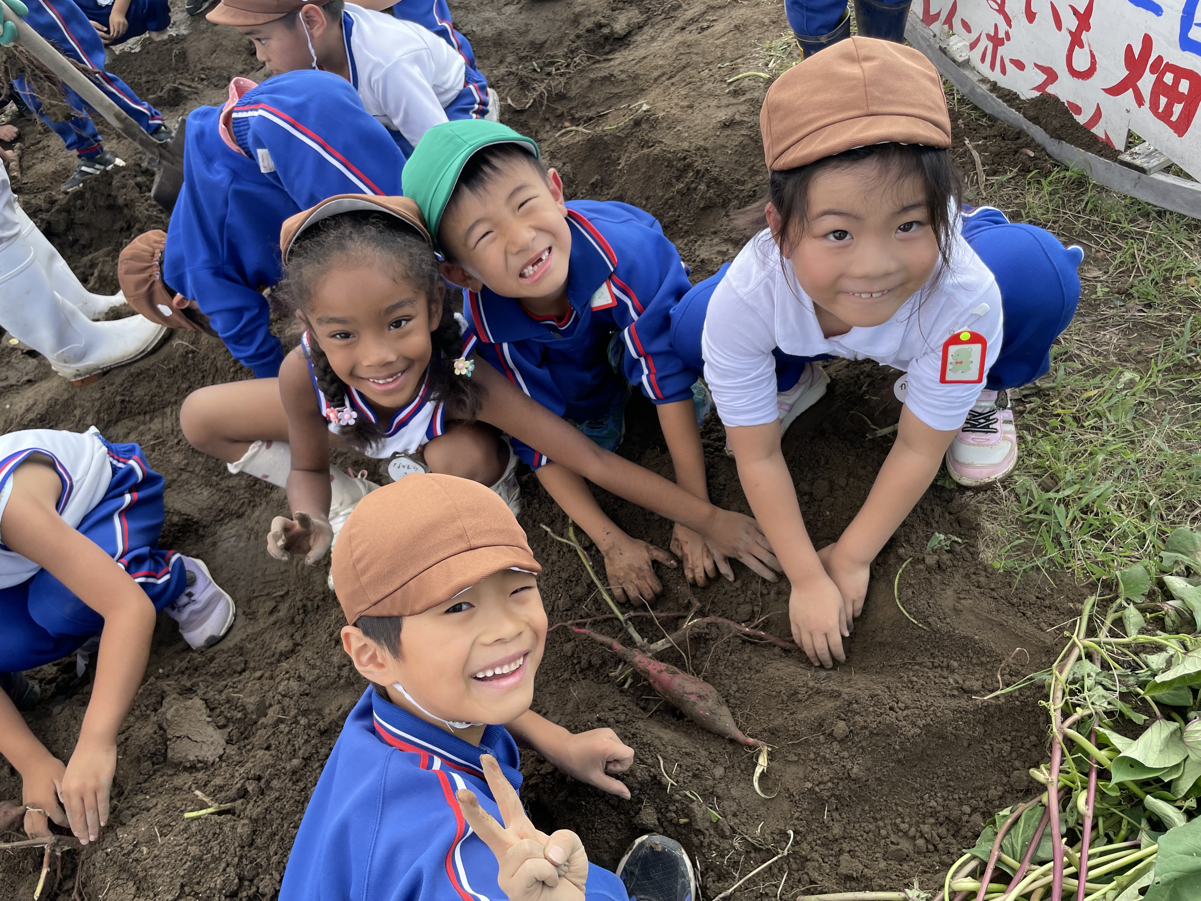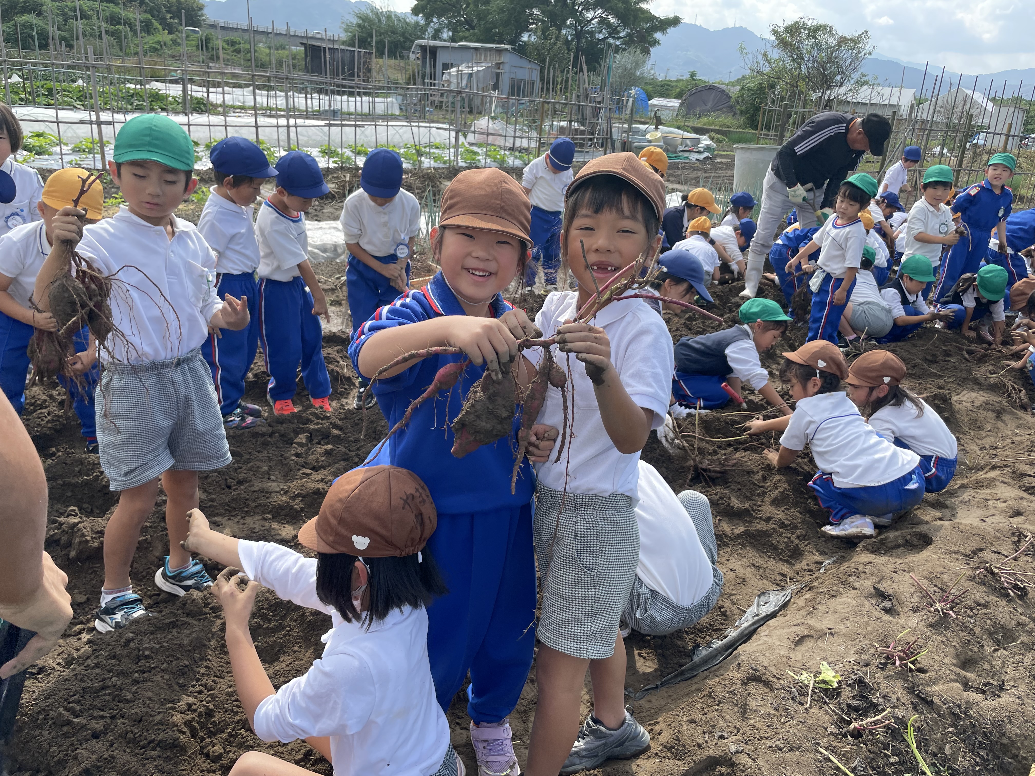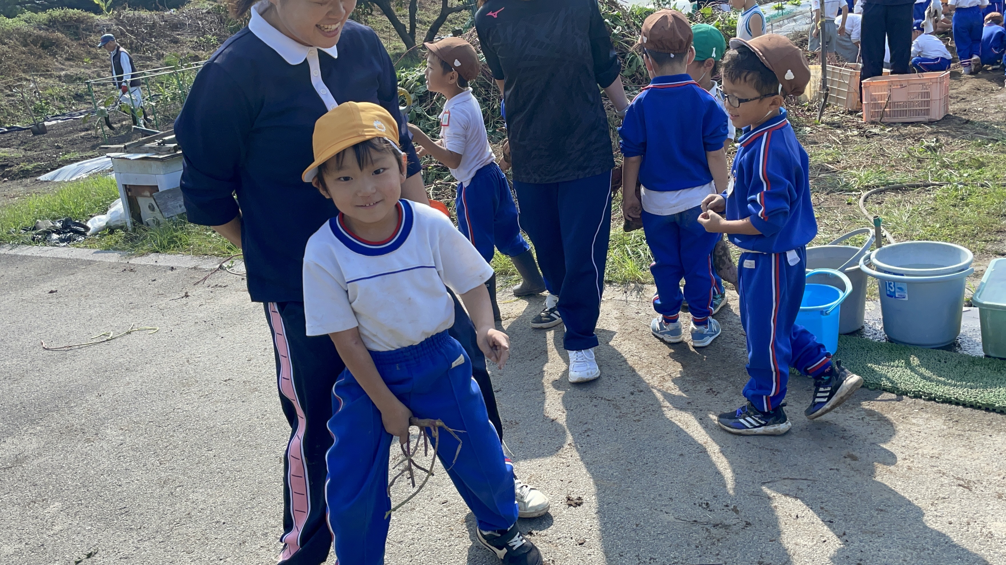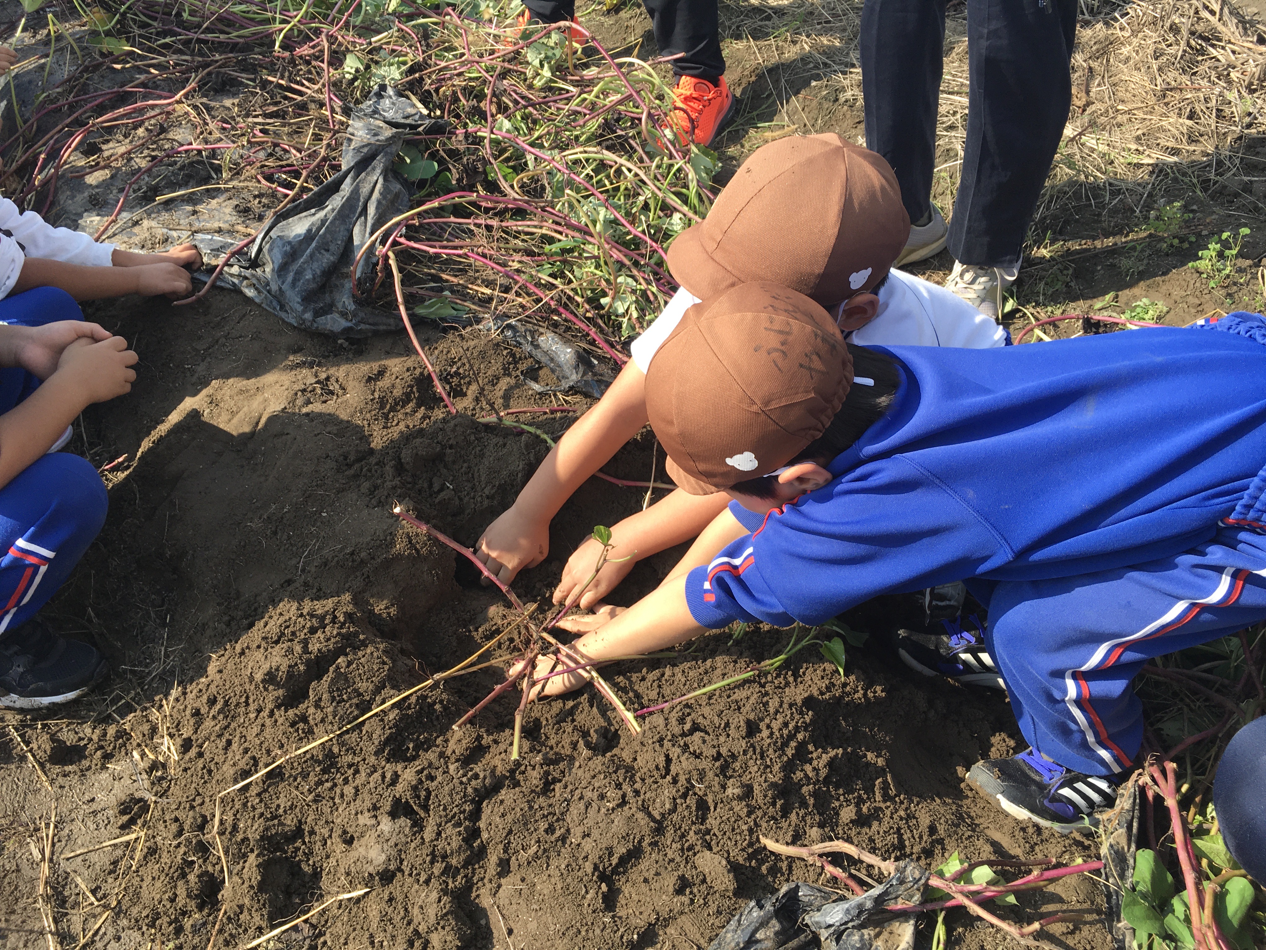 去年までは畑の虫が怖くてお芋掘りや植える時には涙が出ていたSちゃんやEちゃんが今日はとても楽しそうな顔でお芋を掘って見せてくれました。随分たくましく強くなったなぁと嬉しく思いました。「なんで泣かなくなったの?」と聞くと「だってみんなでやると楽しいんだもん」と答えてくれました。運動会を経てより仲間意識が高まった子どもたちになんだかじーんとしました。