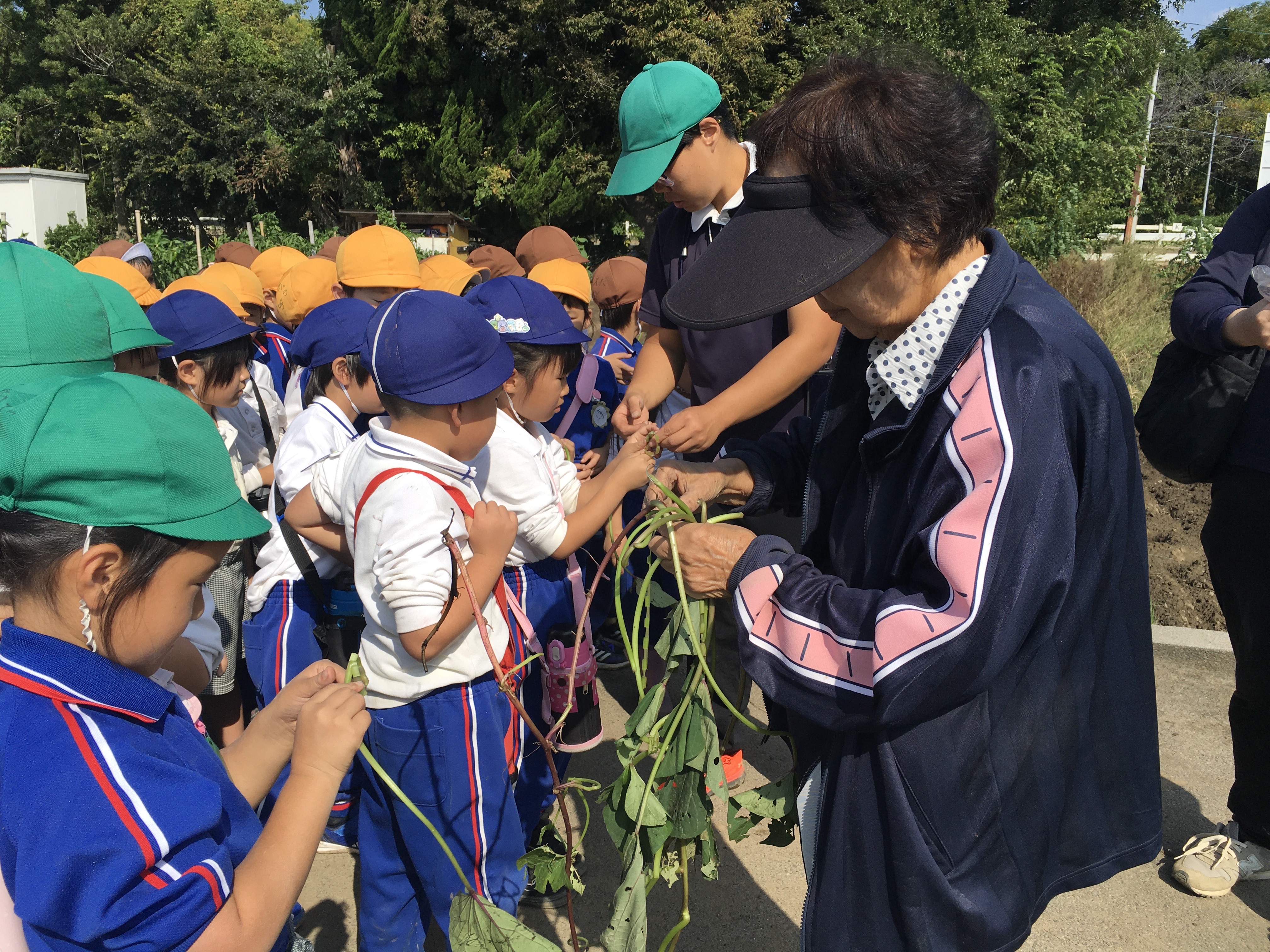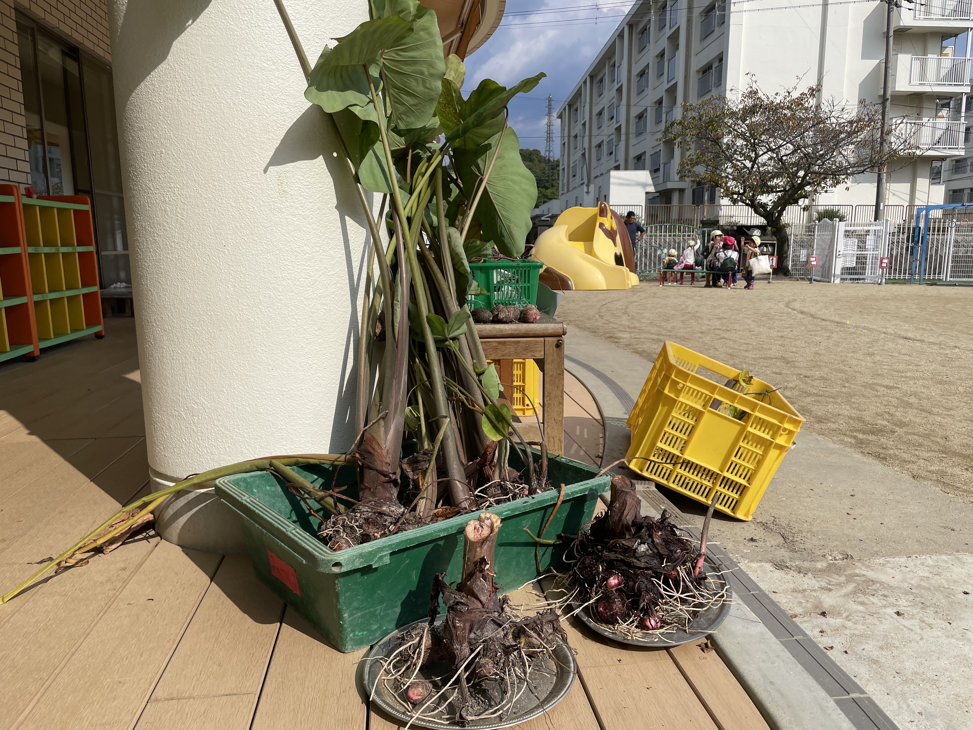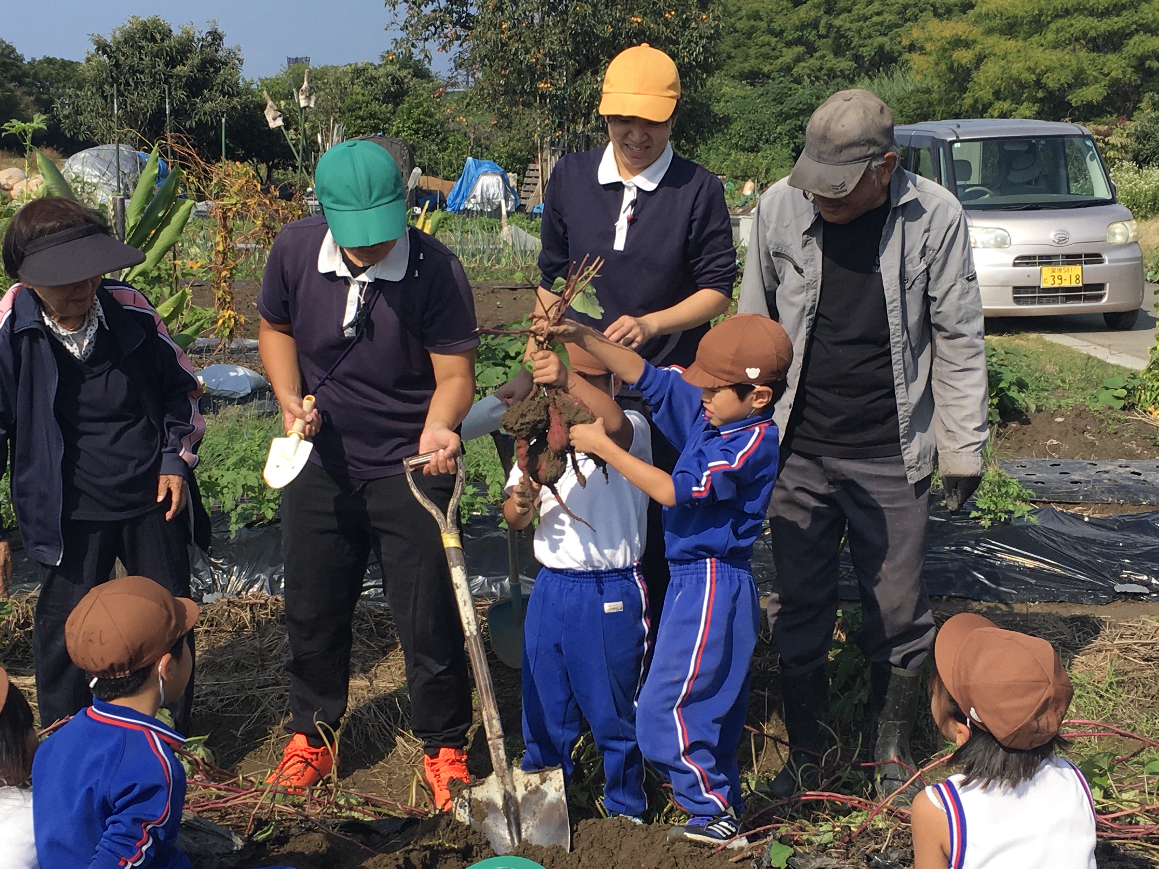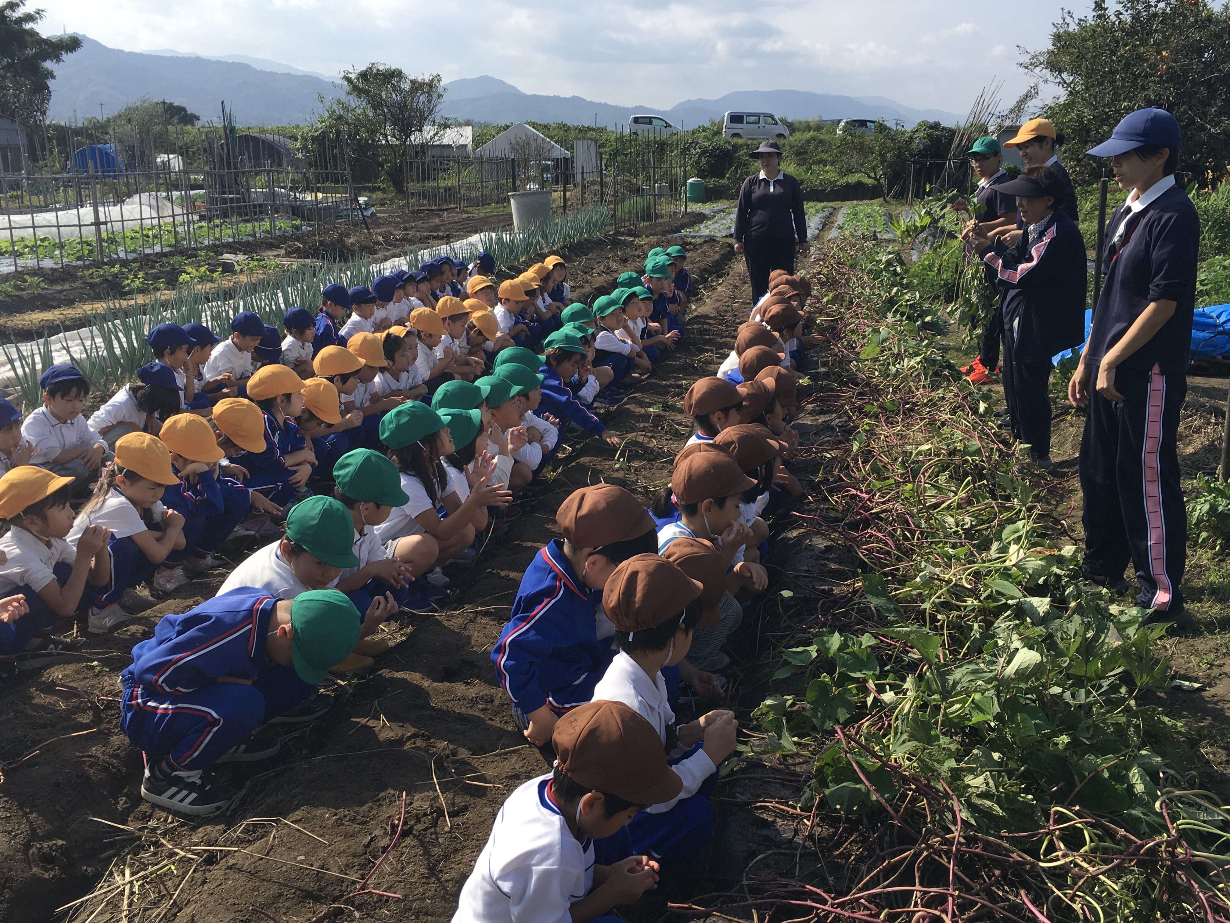 去年までは畑の虫が怖くてお芋掘りや植える時には涙が出ていたSちゃんやEちゃんが今日はとても楽しそうな顔でお芋を掘って見せてくれました。随分たくましく強くなったなぁと嬉しく思いました。「なんで泣かなくなったの?」と聞くと「だってみんなでやると楽しいんだもん」と答えてくれました。運動会を経てより仲間意識が高まった子どもたちになんだかじーんとしました。