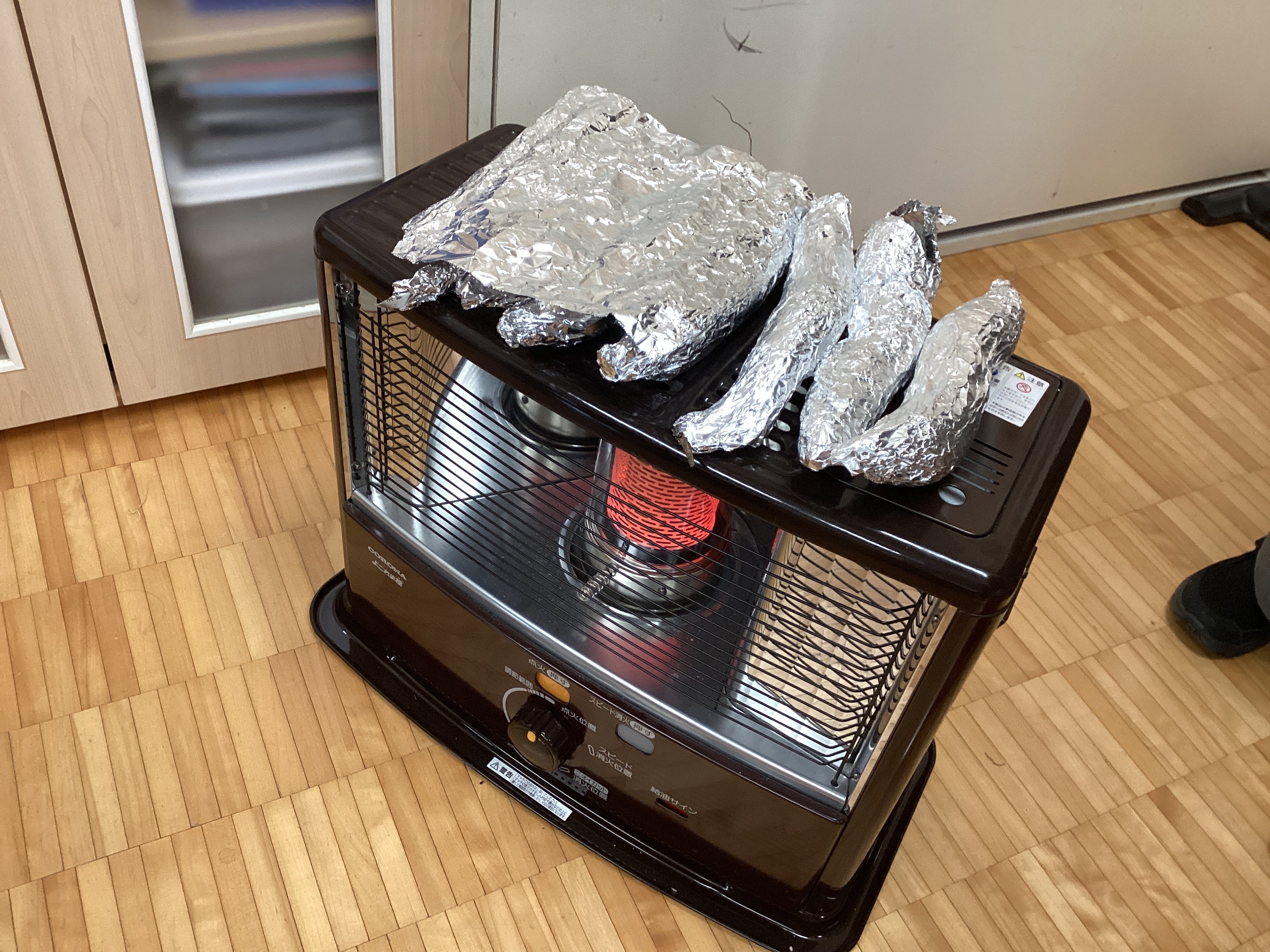 そうこうしていると事務所からいい匂いがしてきました。何と!古森先生と事務員さんが事務所のストーブの上で焼き芋を作っていたのです。