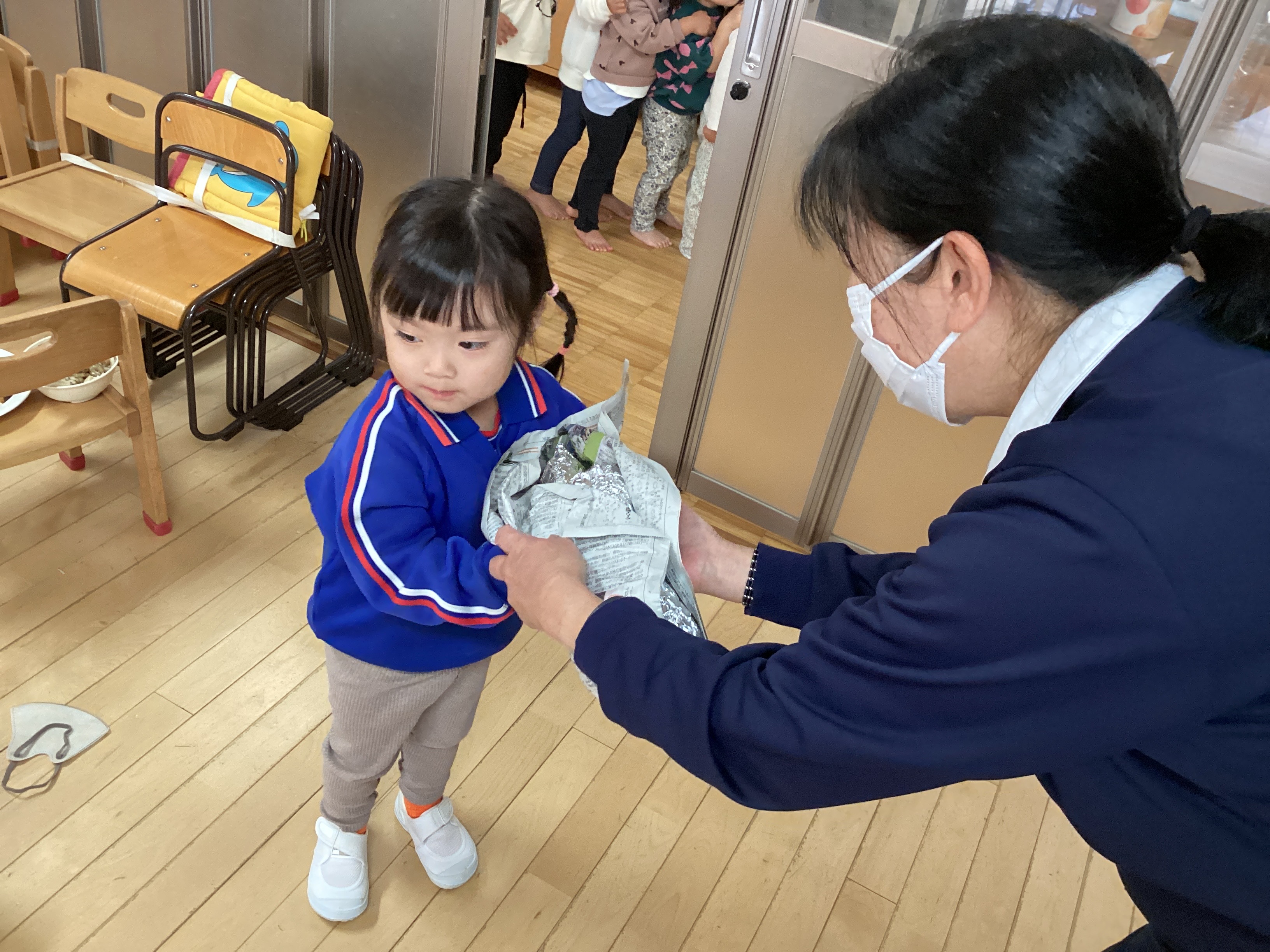 昼食が終わる頃、年中組さんが嬉しそうにお部屋に持って来てくれたのは・・・