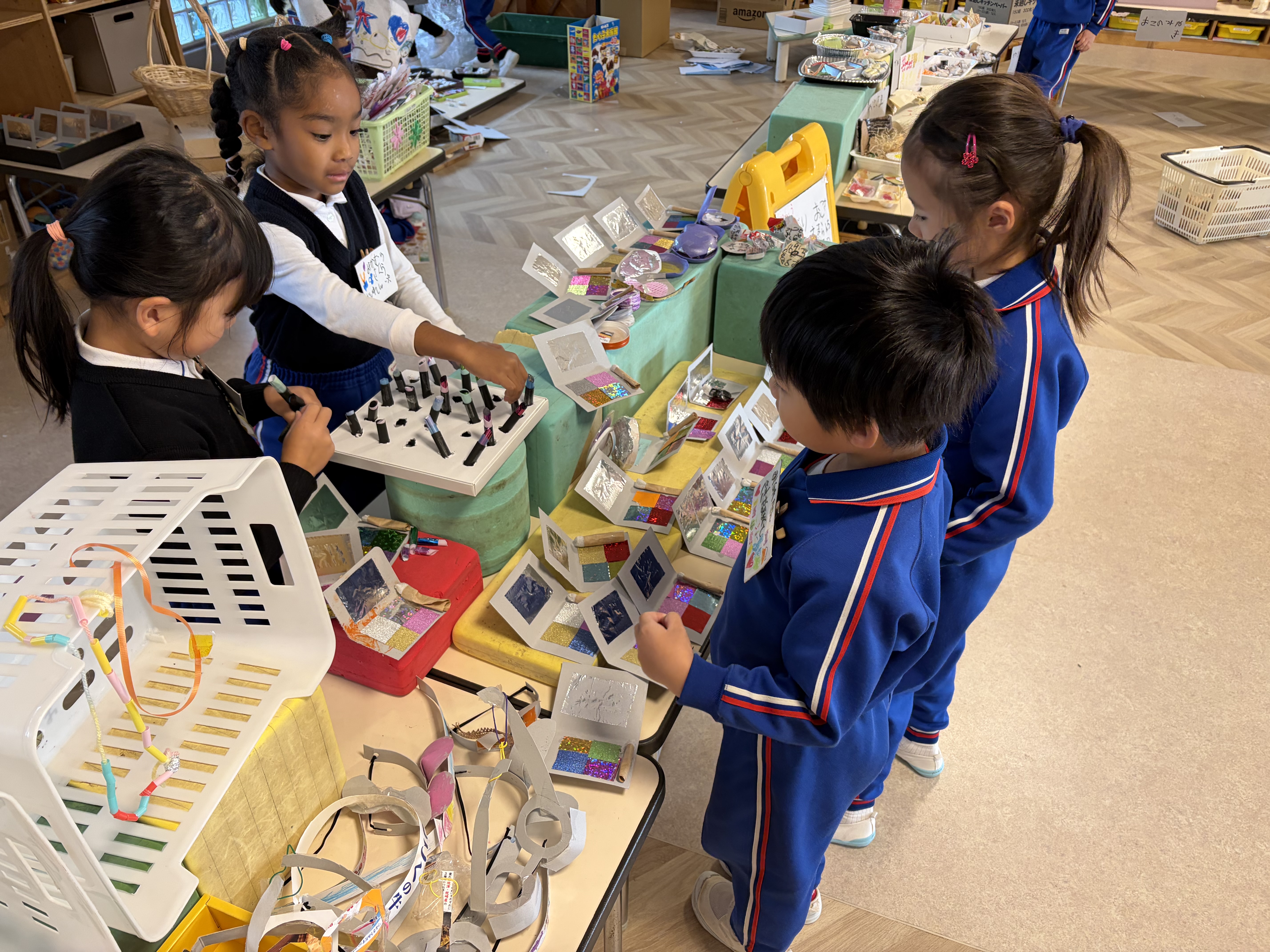 先週からのお店やさんづくり。連日のお客さんでアルバイトの教師も大忙しでした。この子達の素敵な活動、楽しさ、皆様に届いたでしょうか。長くなり、すみません。沢山お話を聞いてあげて下さい♪