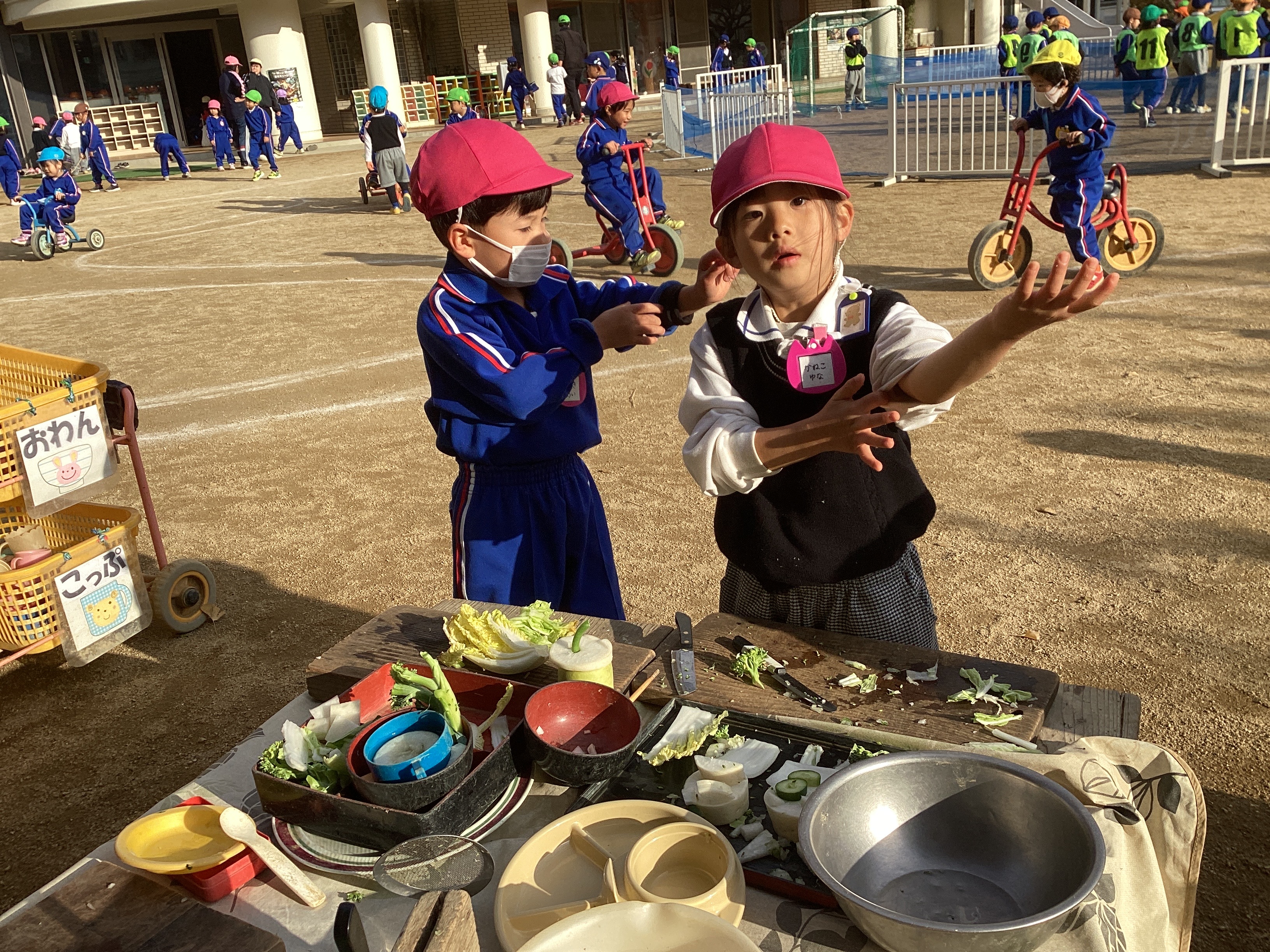 今朝も雲の多い空の下子どもたちは帽子取りやサッカーをして汗をかきながら遊んでいたり、ままごとや砂場でも友達と山や料理を作ったりして遊んでいました。