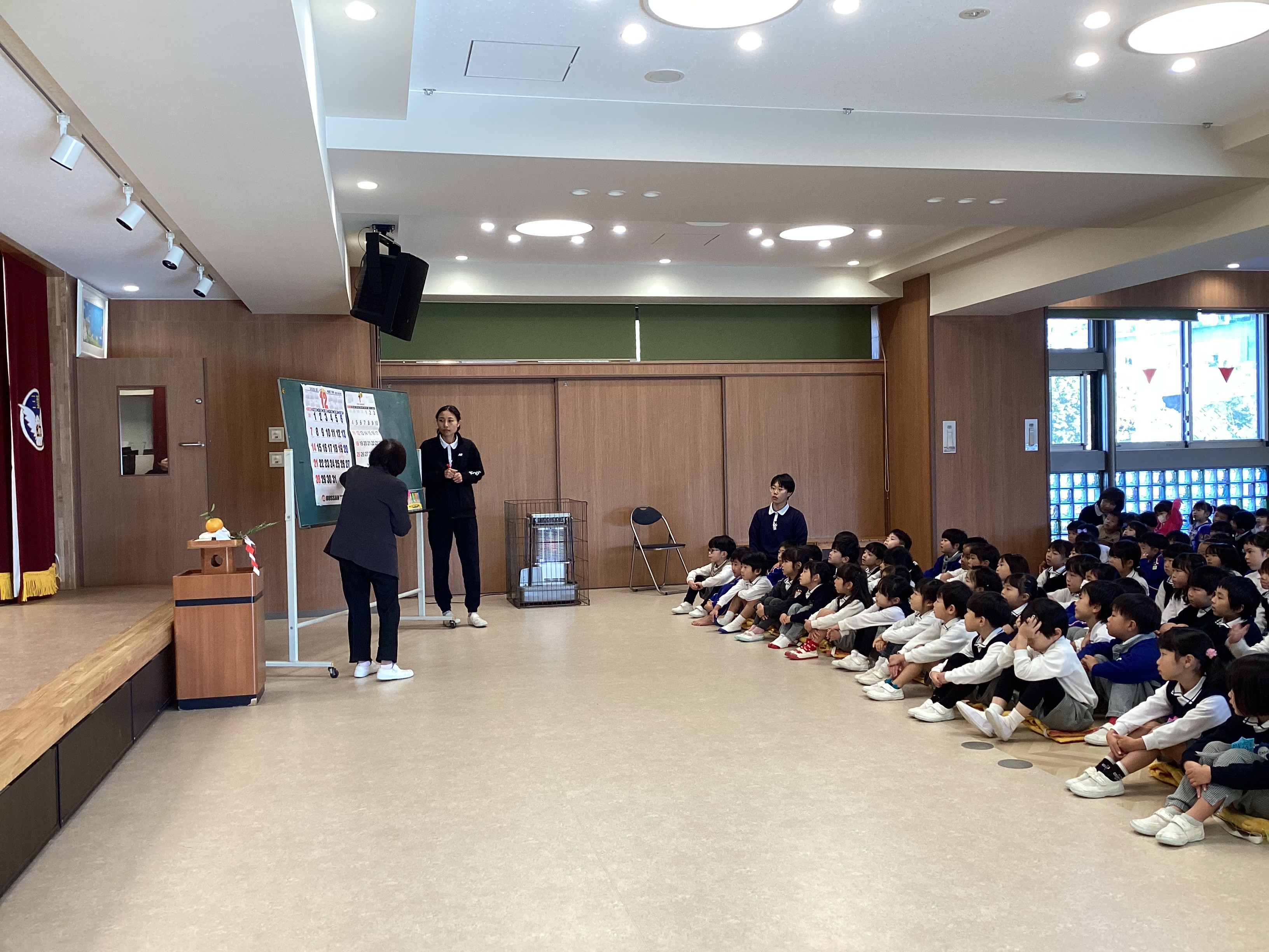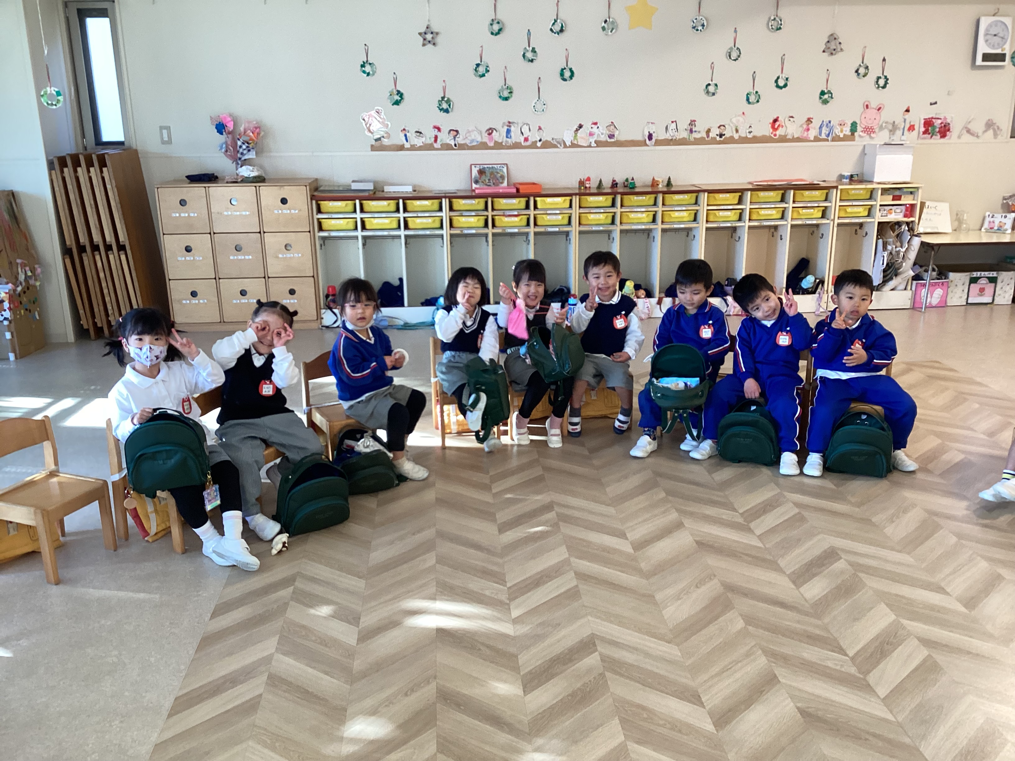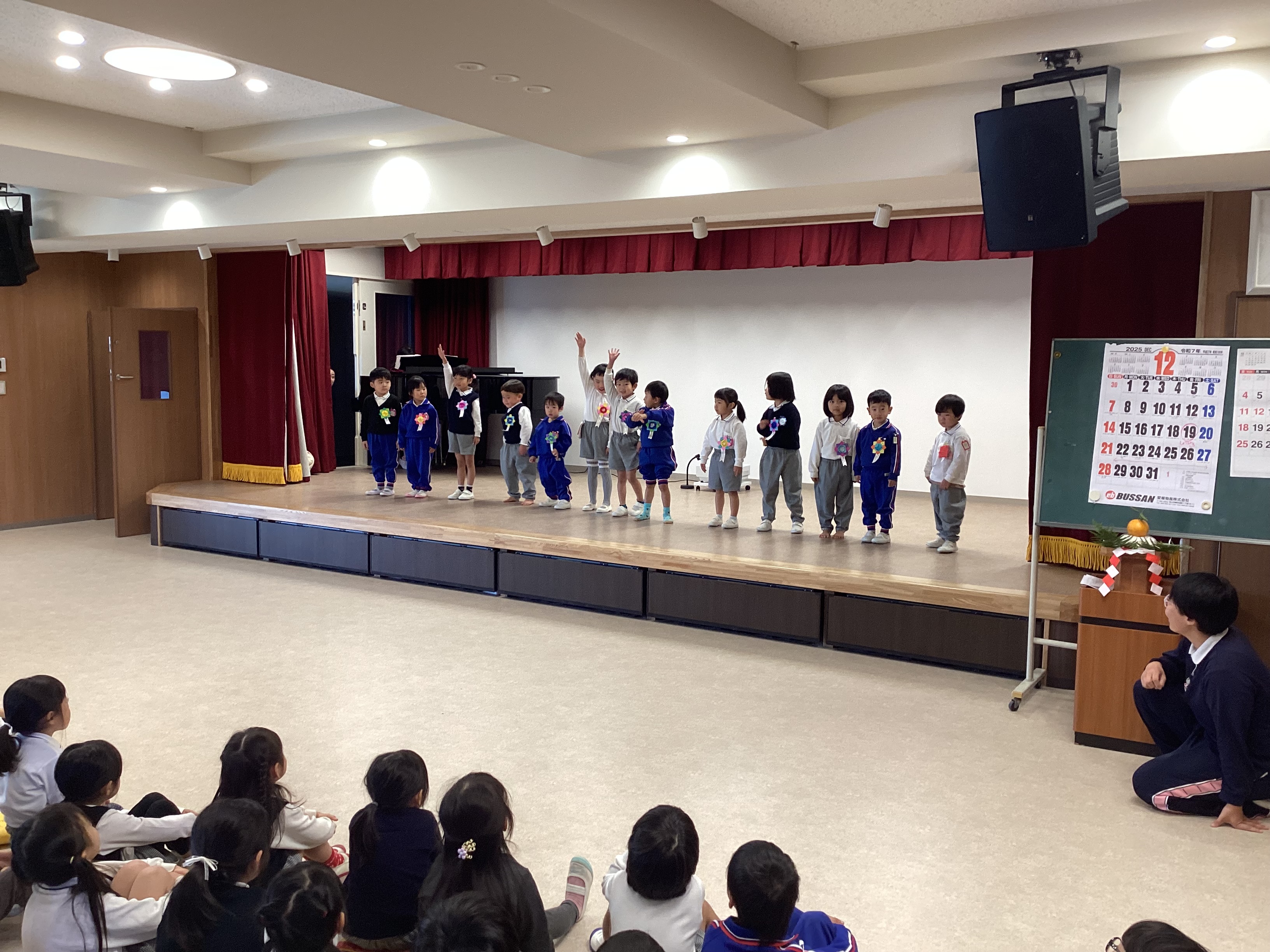 その後、12月生まれの友達の誕生日をお祝いし、みんなでお正月の歌を歌って終園式を終えました。