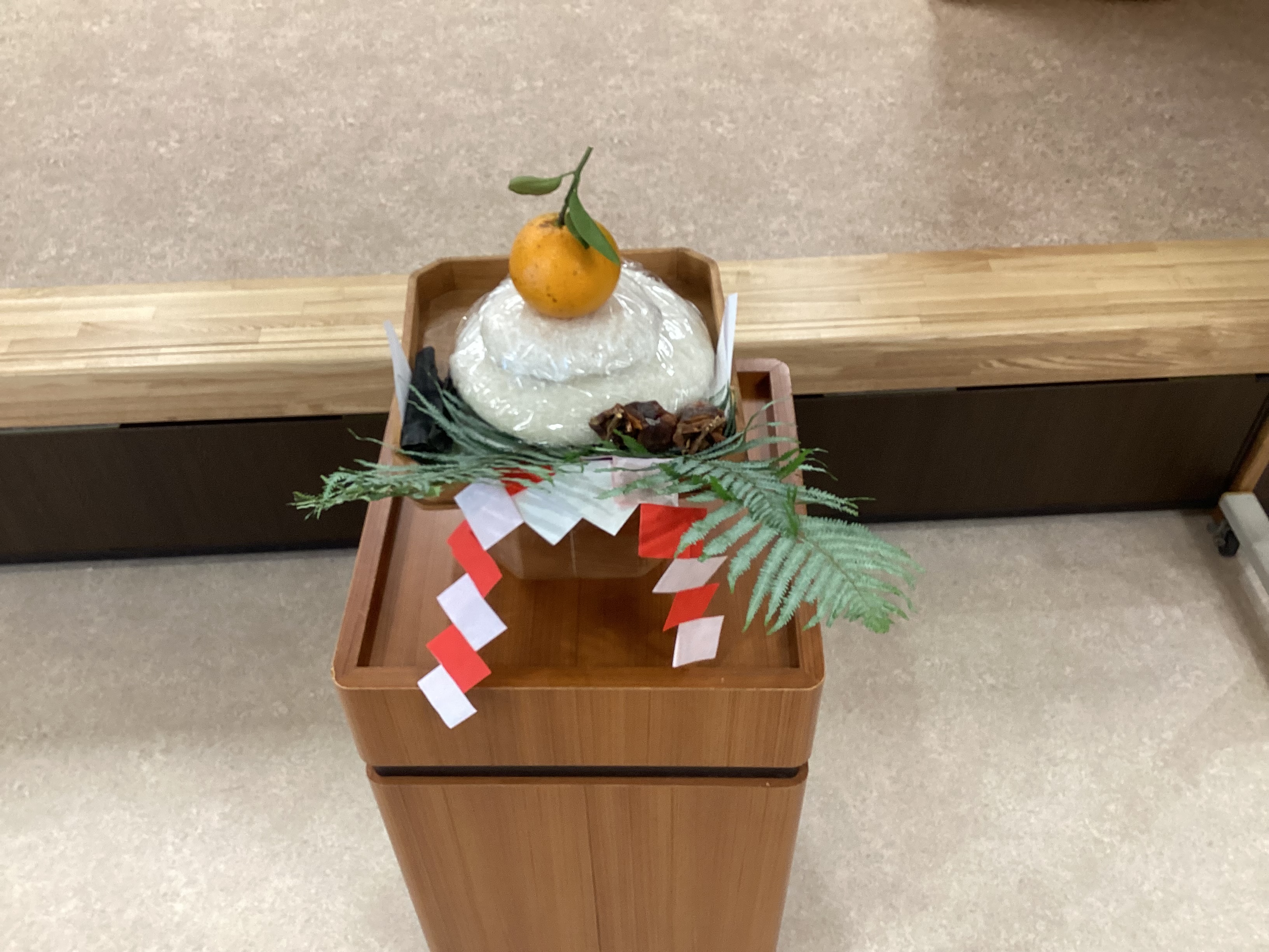 式場に上がると、昨日、古森先生がみんなの前で作ってくれた鏡餅が飾られていました。