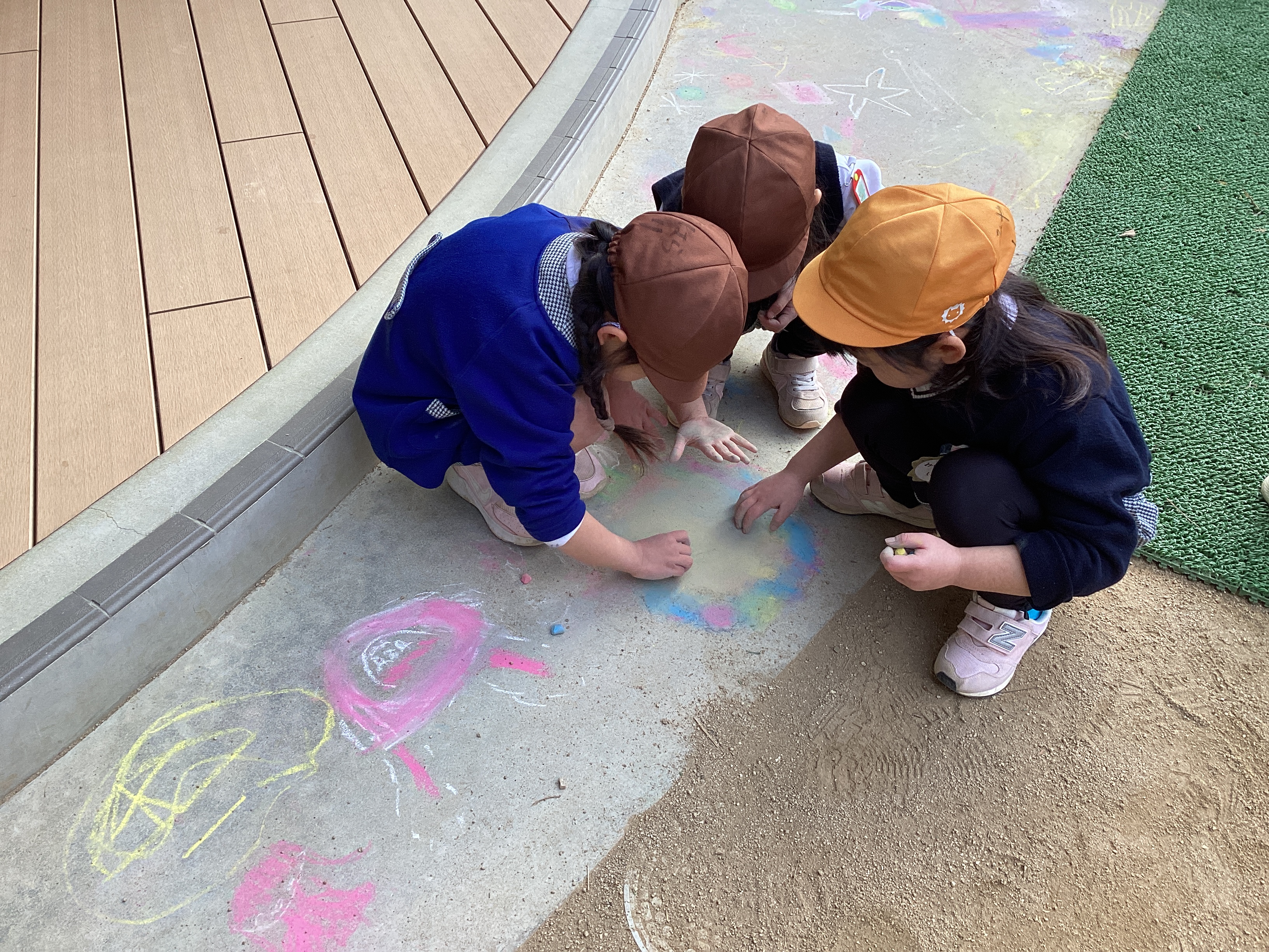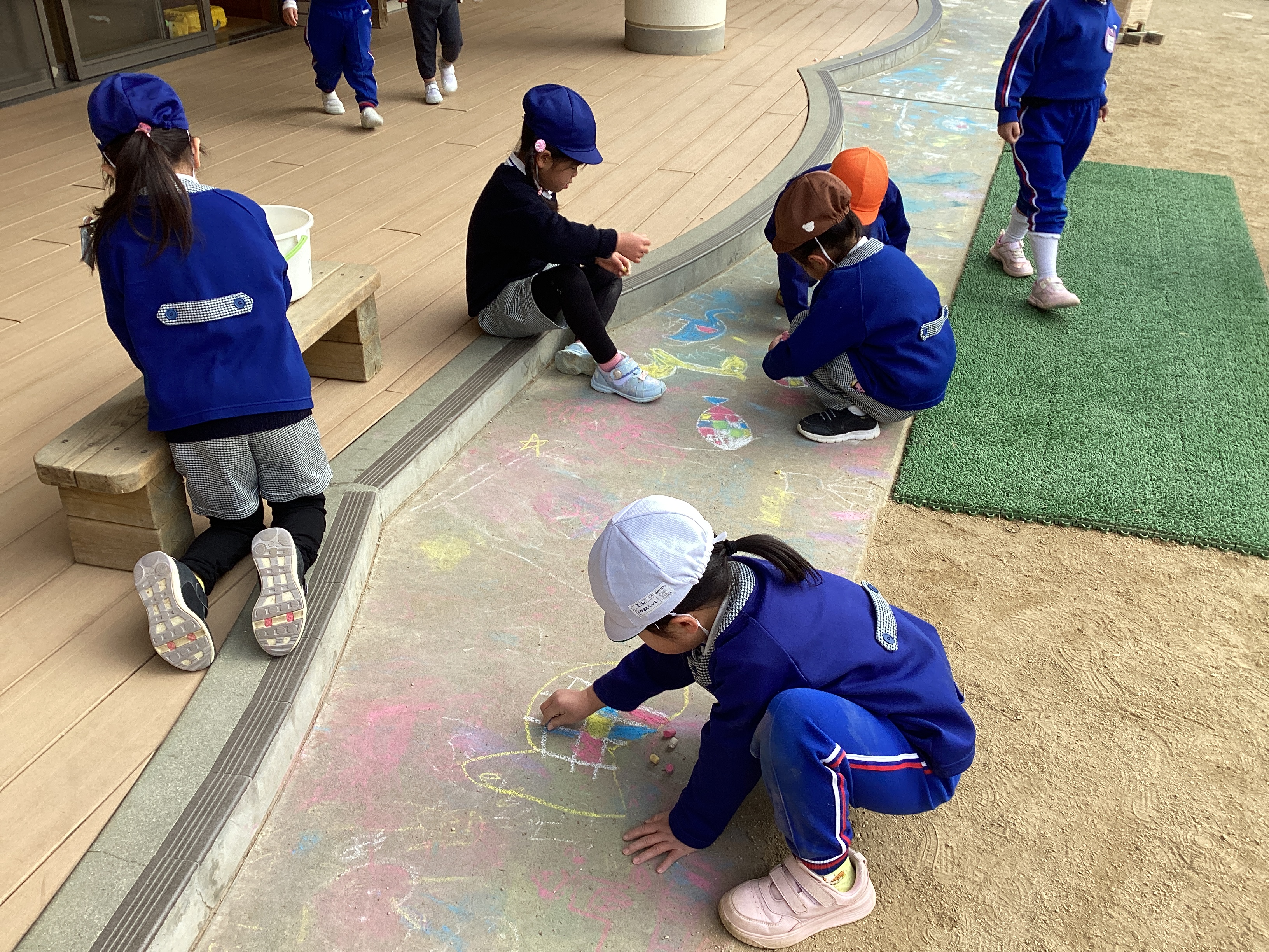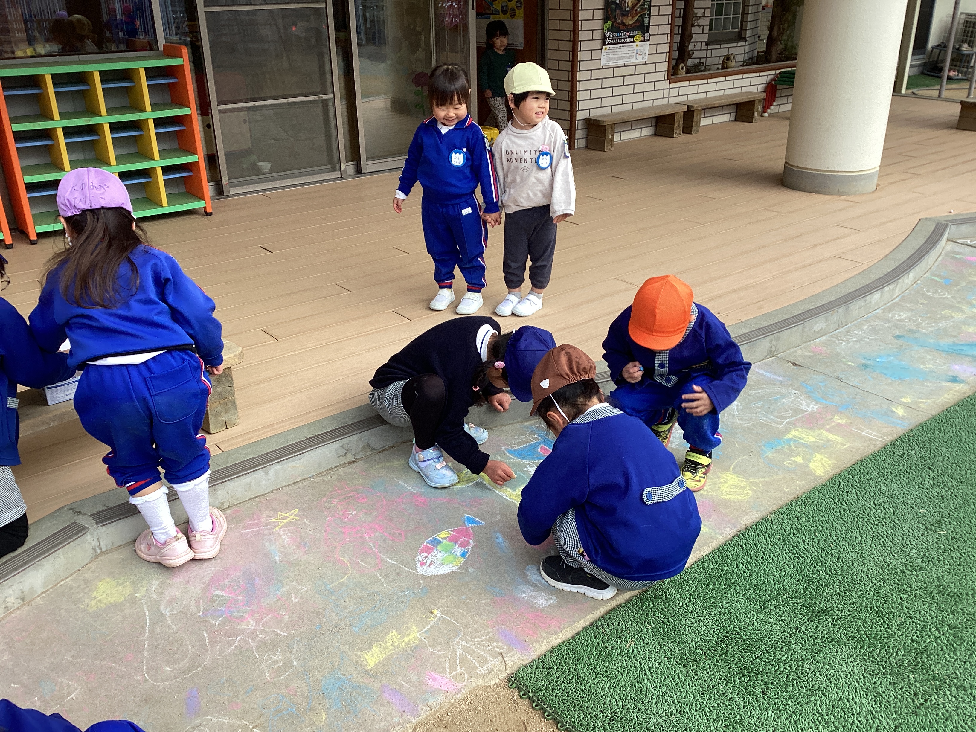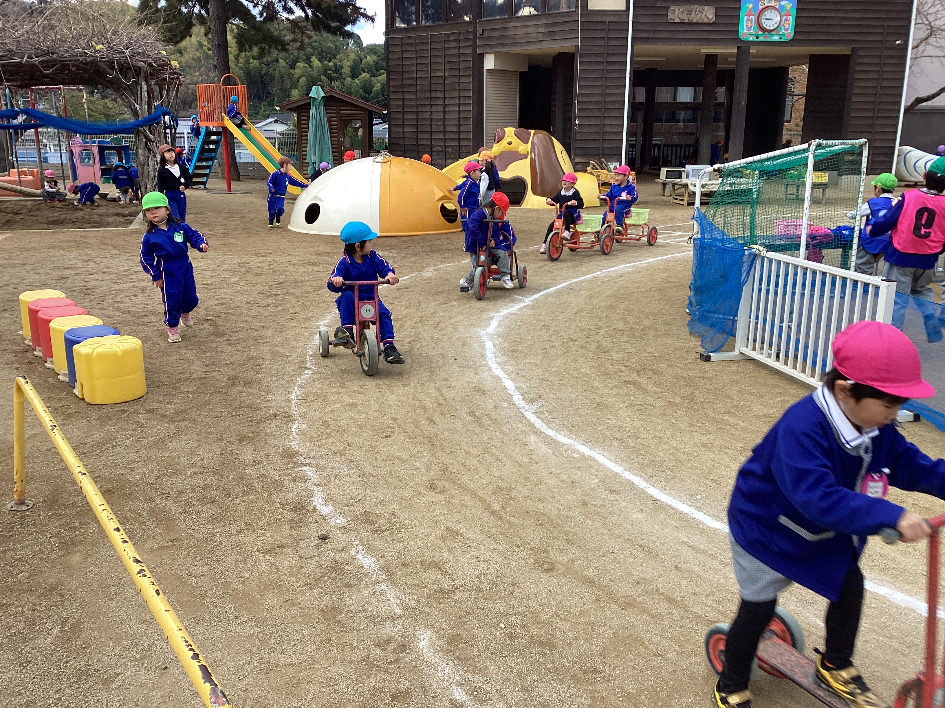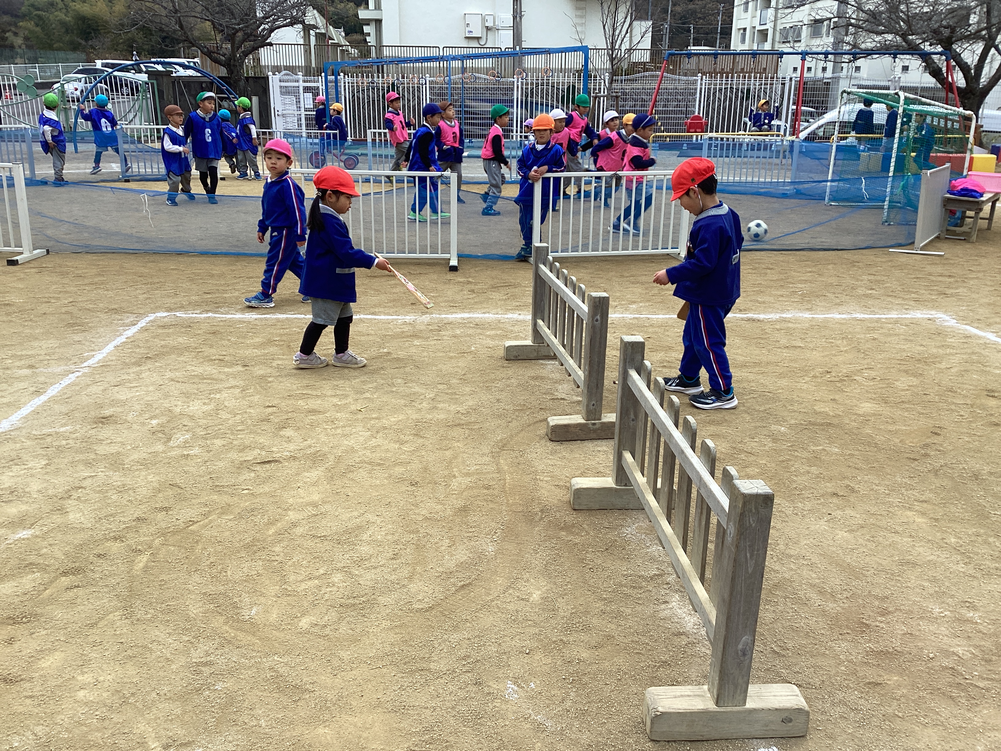 今日から3学期がはじまりました。冬休み後久しぶりに登園する子ども達はバスに乗っている時から「幼稚園まだ着かないの?」「〇〇ちゃんきてるかな?」とワクワクしていました。冬休み中預かり保育だった子達はお正月遊びを楽しんでおり、久しぶりに登園した友達に教えてあげていました。天気も良く青空の下身体いっぱい動かして遊んでいました。