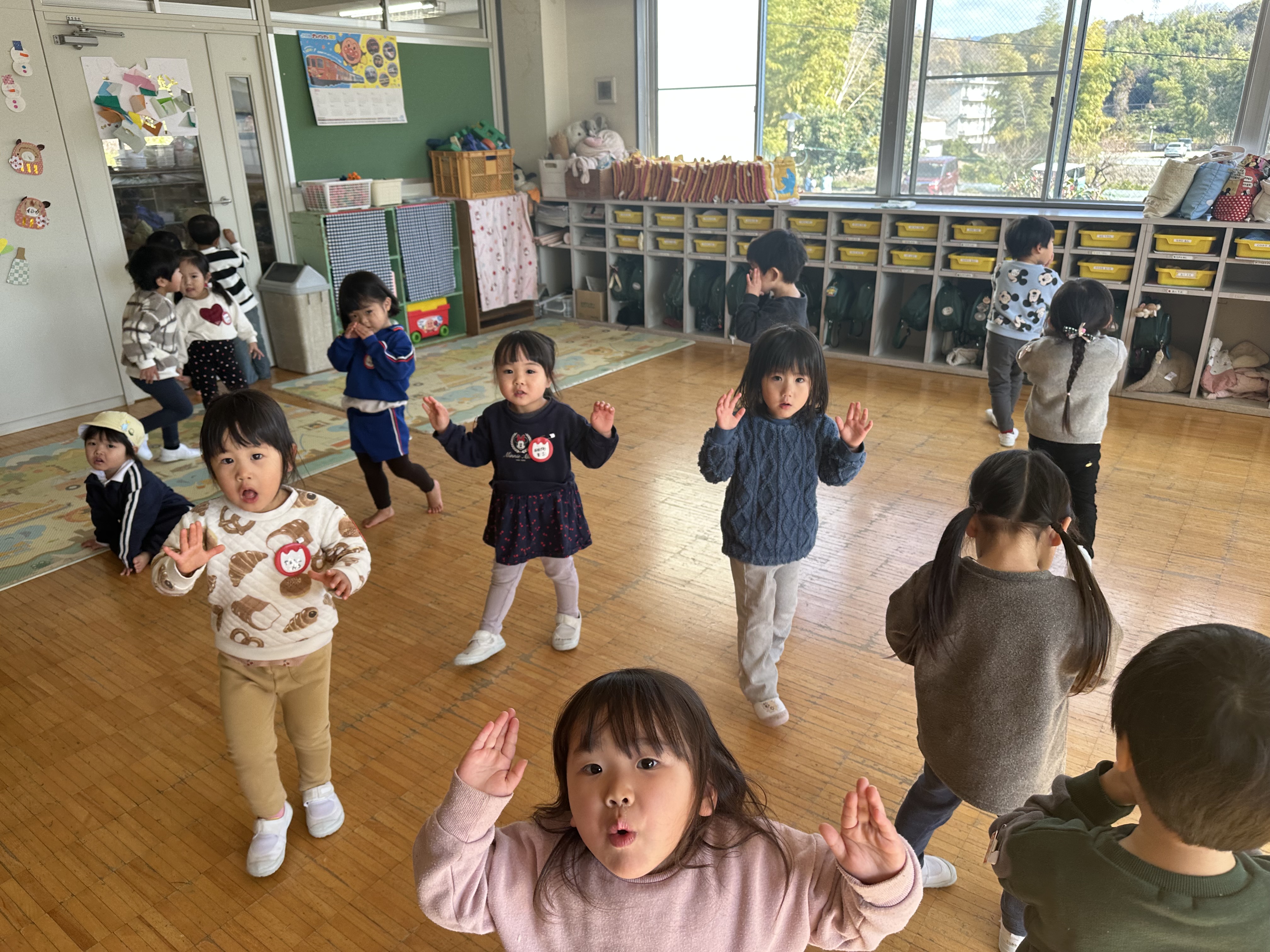 発表会の踊りやオペレッタの曲を流すと楽しそうに踊っていて、衣装を見せるともっと目をキラキラさせて喜んでいる子ども達です。発表会の練習も楽しみながら頑張ります。また、進級までの3カ月、子ども達といっぱい楽しいことを見つけて過ごしていきたいと思います。