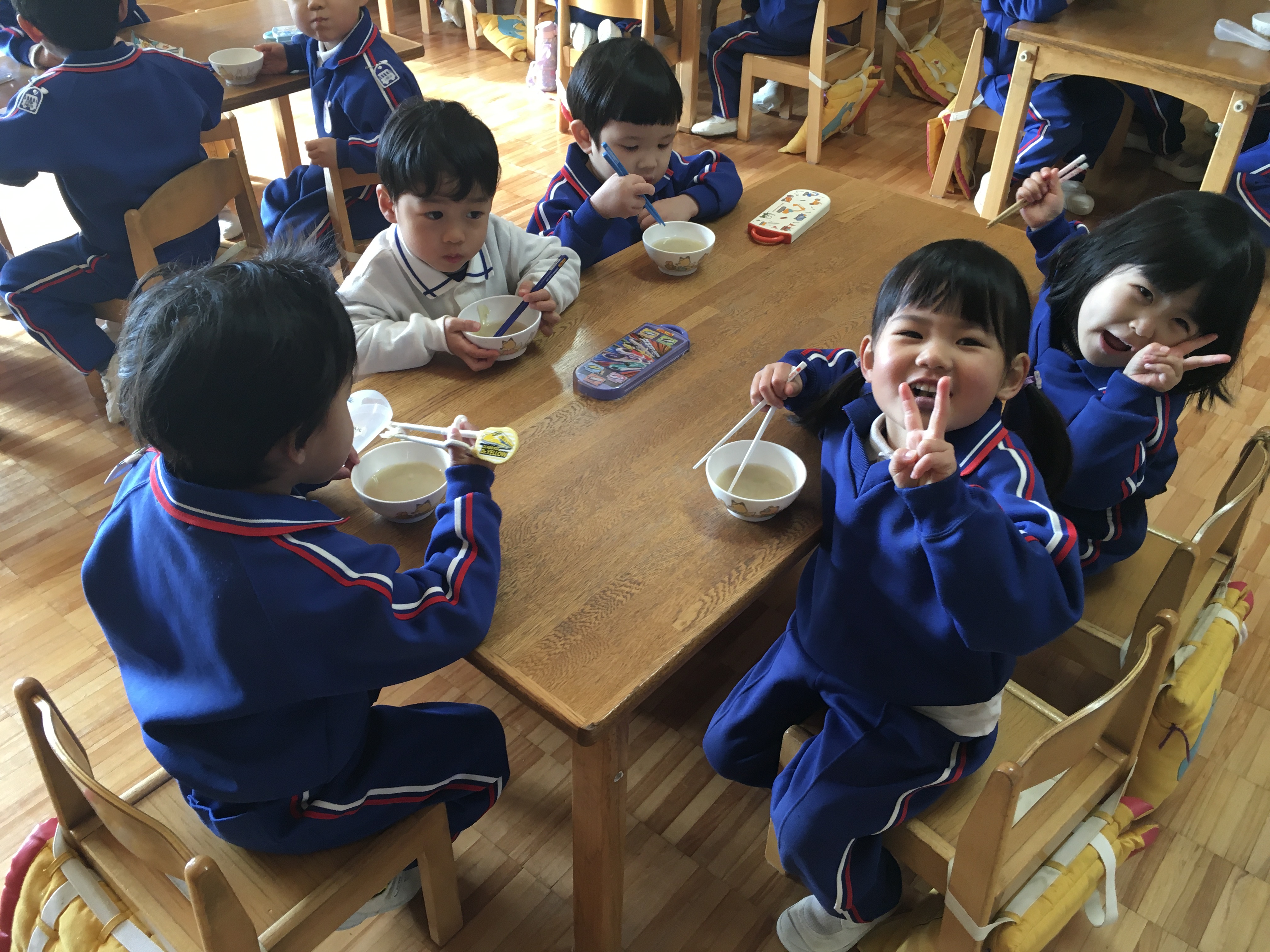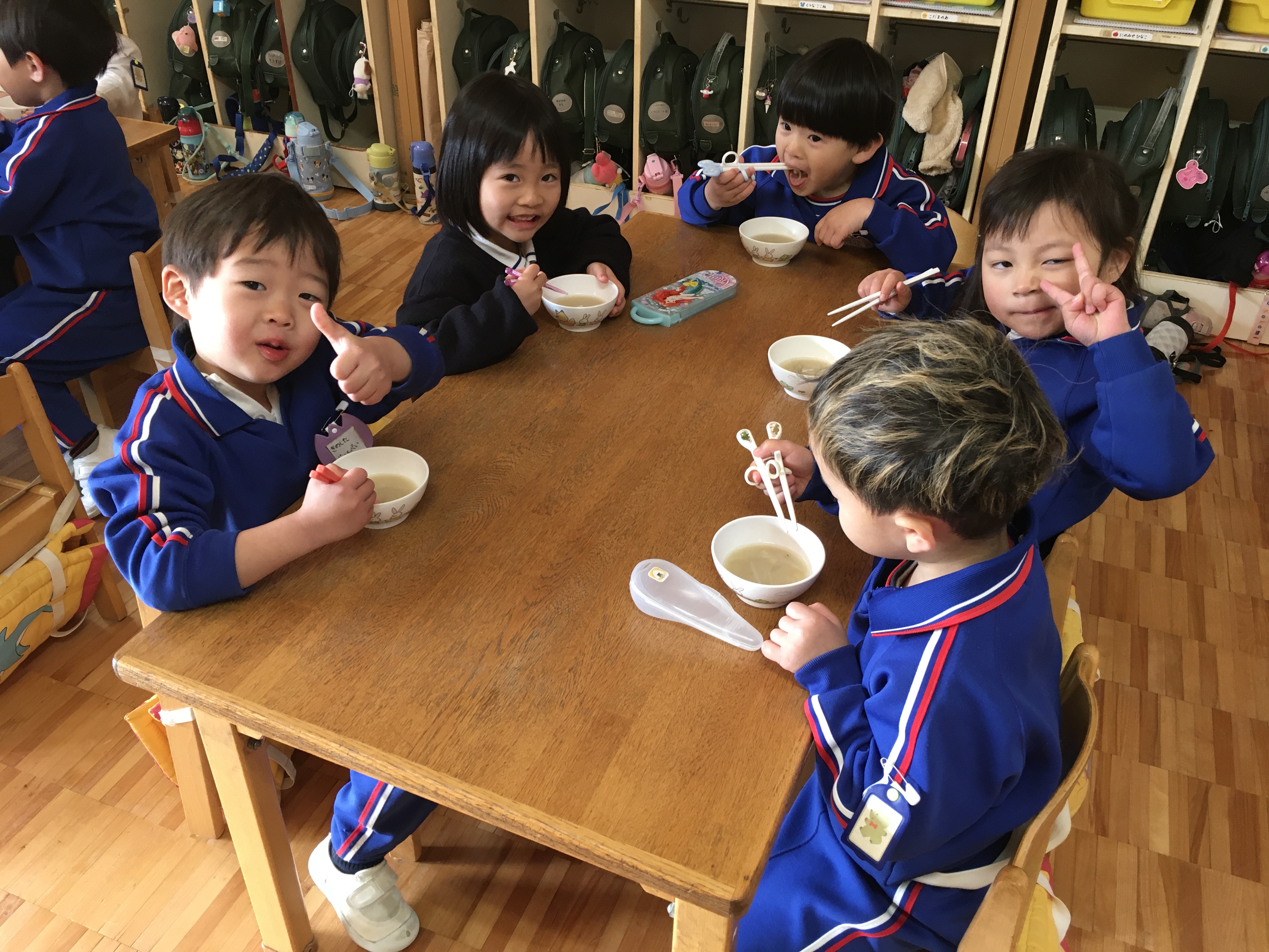 味噌汁で、身体と心が温かくなった子どもたちは、その後にお部屋でした発表会の練習も張りきってしていました。1月も残り約1週間。あっという間に2月がやってきます。手洗い・うがいもしっかりとして、お味噌汁パワーで、風邪やインフルエンザに負けないで冬を乗り切っていきたいと思います。