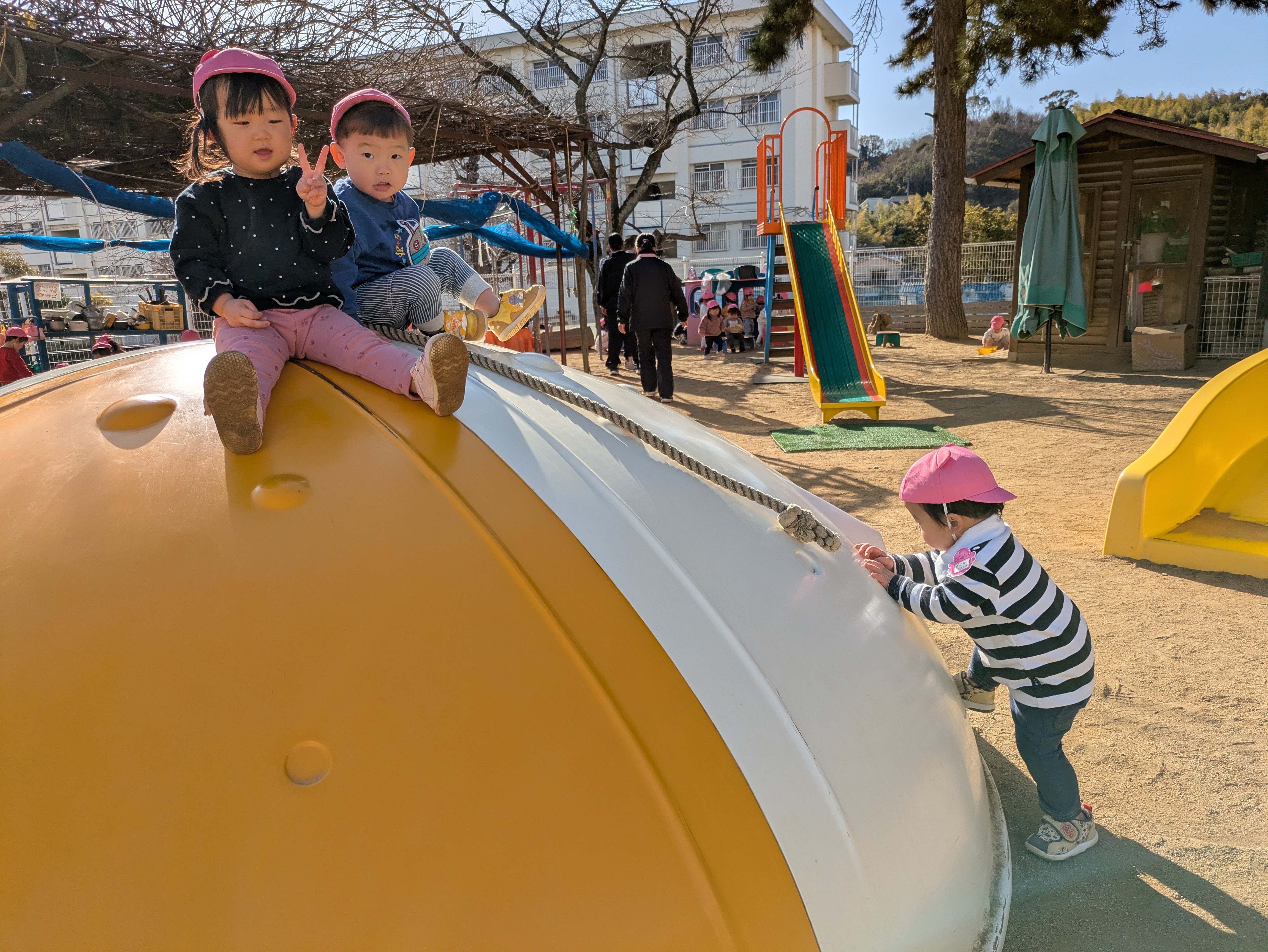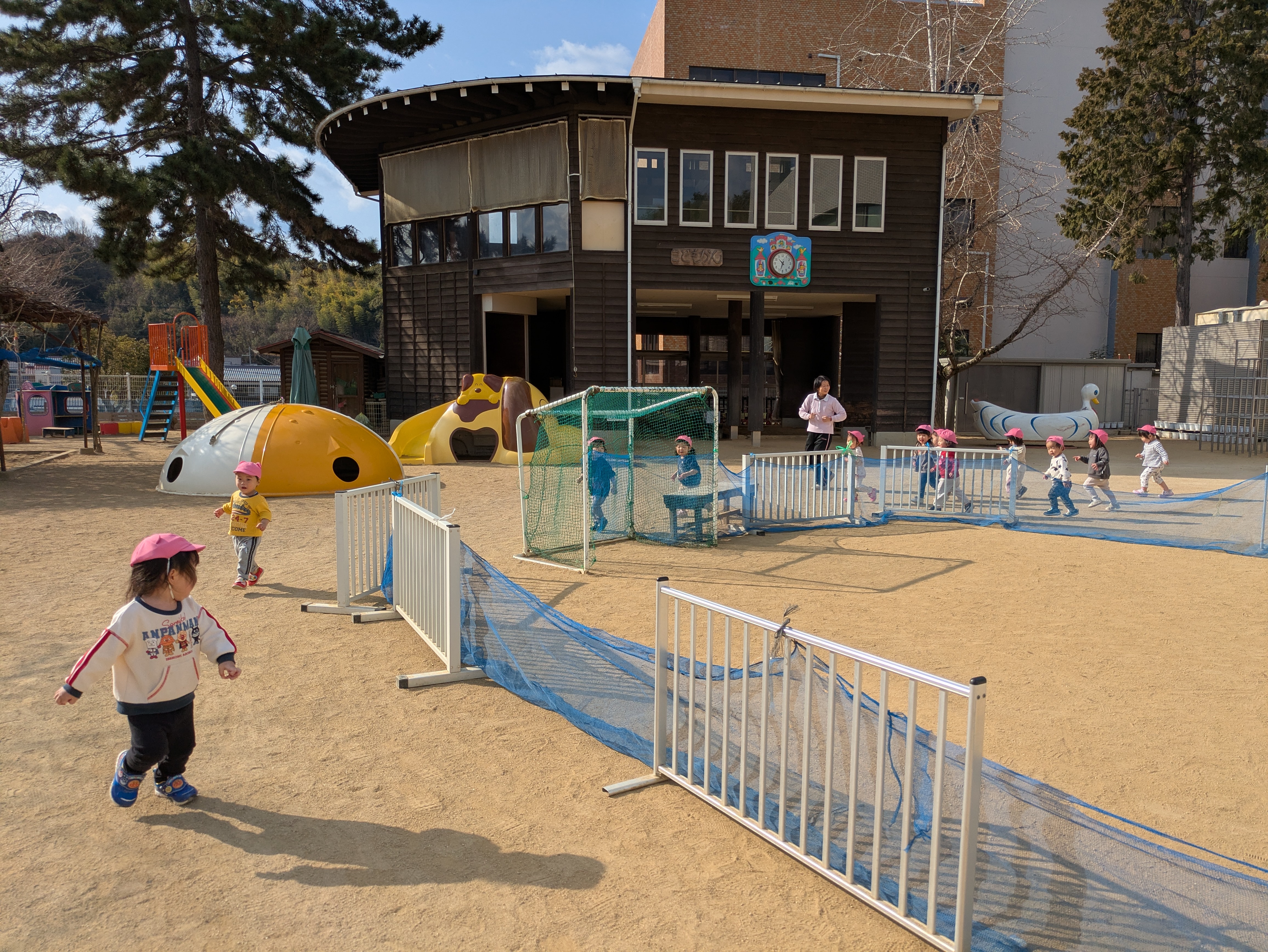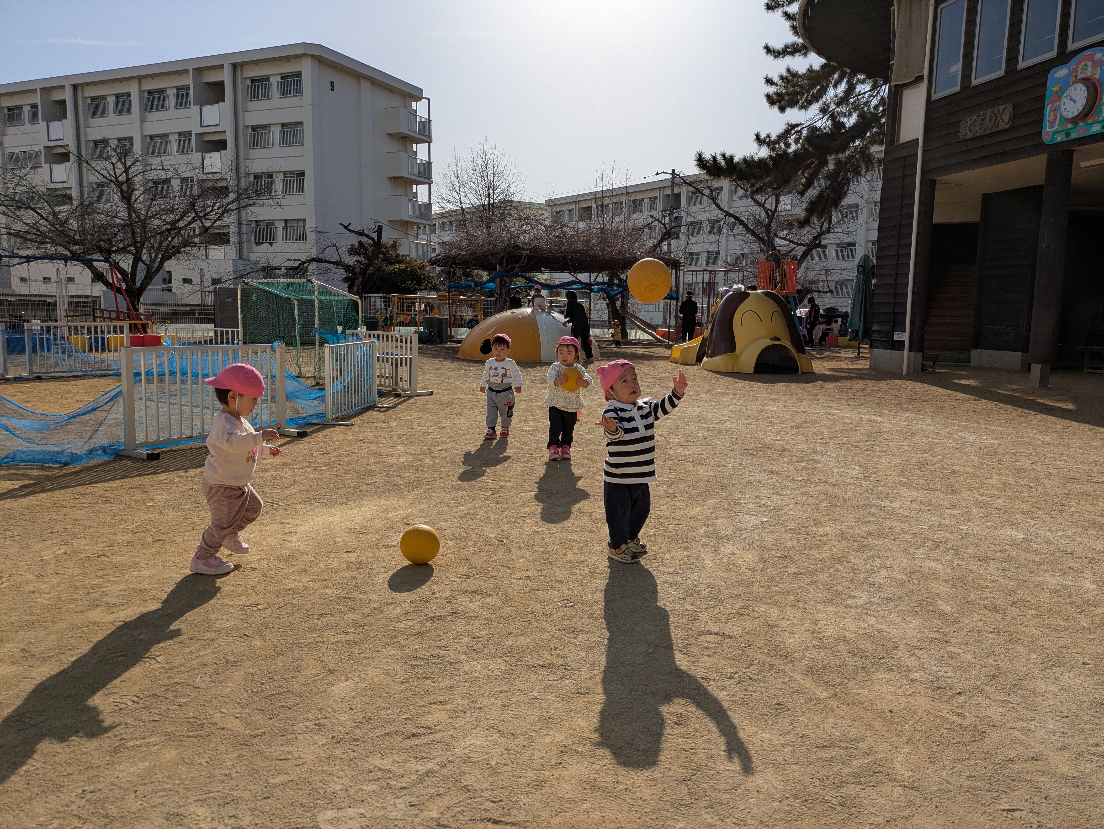 このように三寒四温のこの時期は天気や気温に応じて戸外遊びも楽しんでいます。まだまだ寒さも続きますが、空とにらめっこしながらできるだけ外気に触れさせ身体を動かし、元気いっぱい冬を乗り越えさせたいと思います。