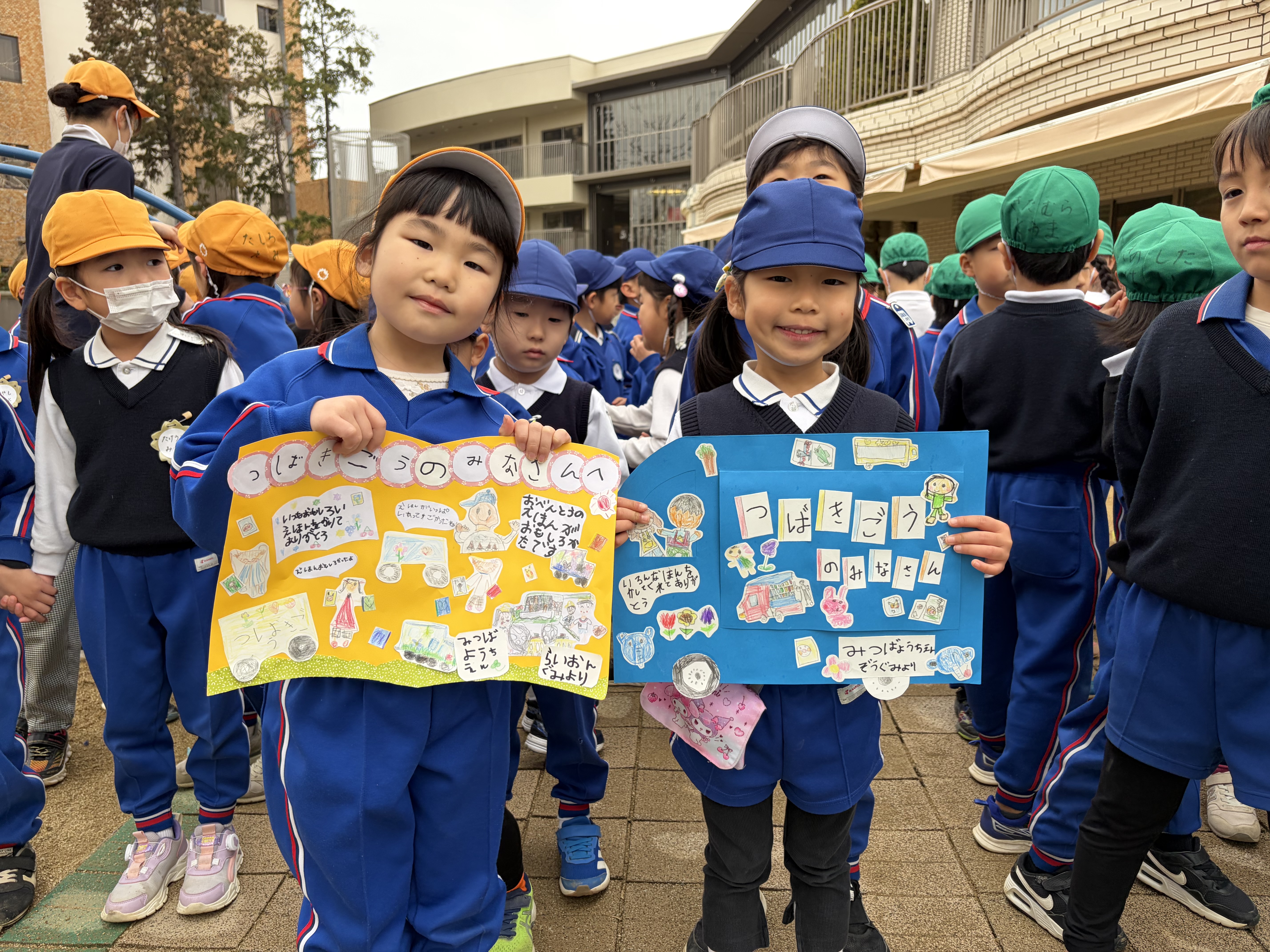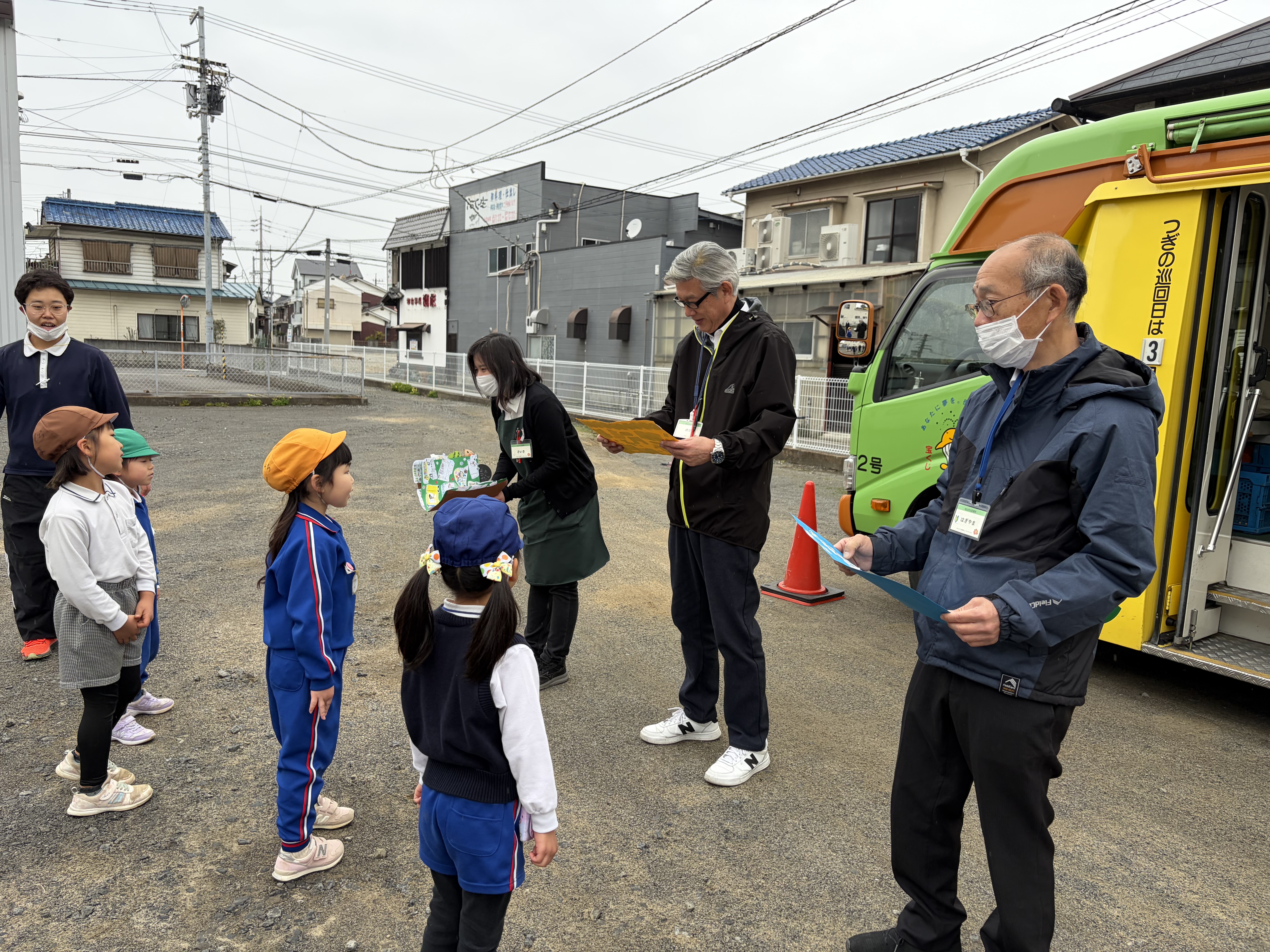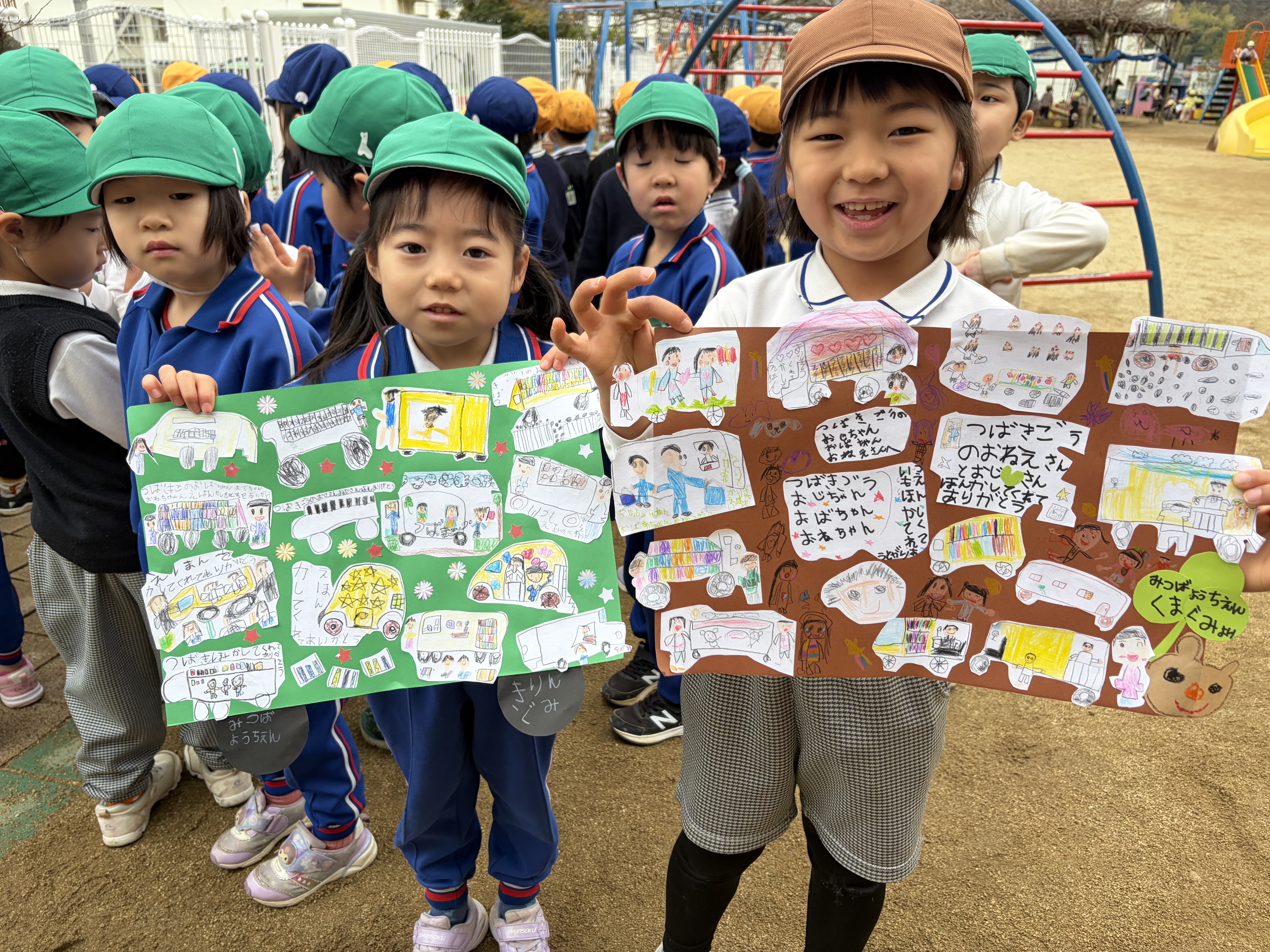 今日はさんさんらんどに移動図書館の椿号が来る日でした。今回は本を借りていなかったのですが、一年間を通して楽しい本や面白い本を持ってきてくれた椿号の職員の方にお礼の手紙を書いて届けることにしたのです。それぞれの手紙には可愛い絵や感謝の文章でいっぱいでした。各クラスから代表で手紙を渡すのですが、ぞう組のAちゃんは職員の方に「いつも楽しい本を貸してくれてありがとう。これからも気をつけて頑張ってください」と言って渡していました。年長児とは思えない立派な挨拶には驚かされました。手紙を受け取った職員の方は「可愛い絵がいっぱい!」「お手紙ありがとう」ととても嬉しそうにお礼を言って頂きました。
