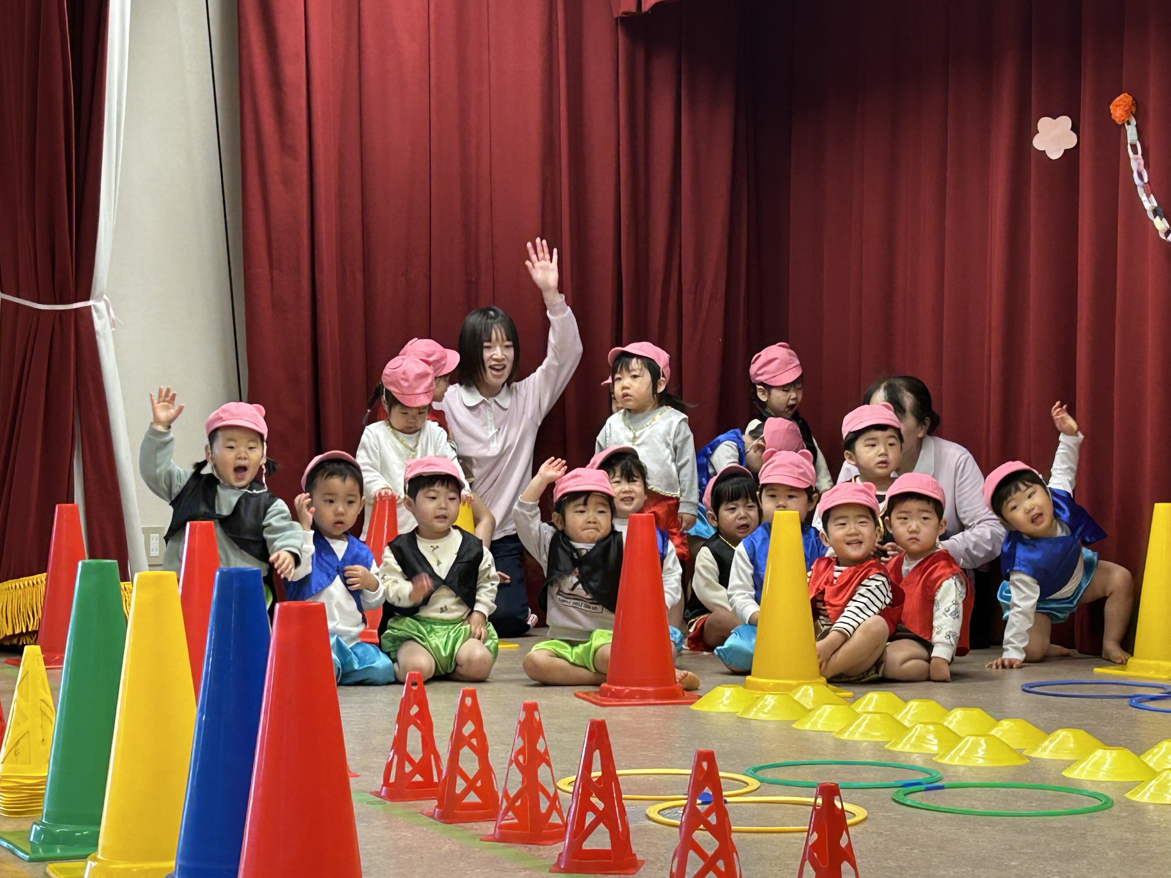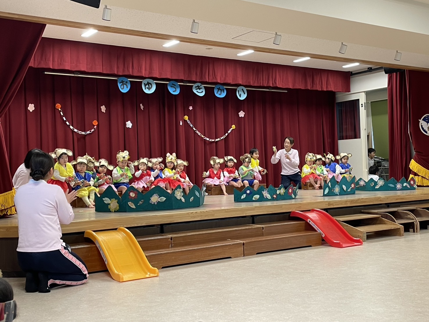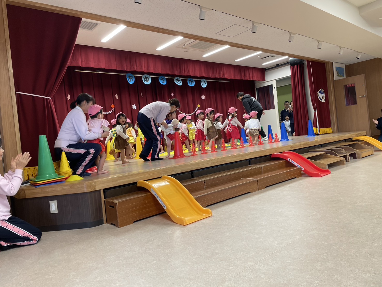 今日のおゆうぎ会では様々な表情や動きを見ていただきました。お家での様子とは一味違った子どもたちの様子が見ていただけたと思います。今日の頑張ったことを、しっかりお家でも褒めてあげてください。今日はありがとうございました。