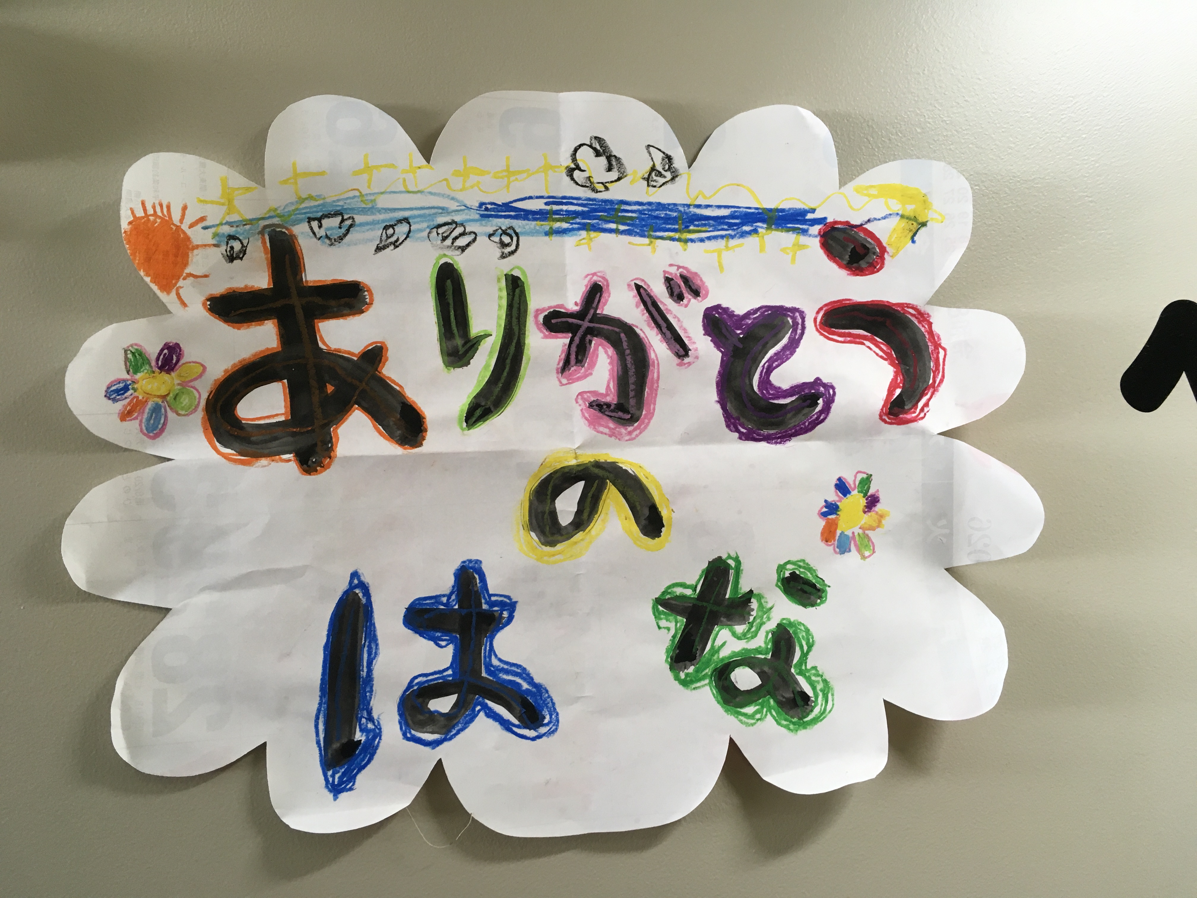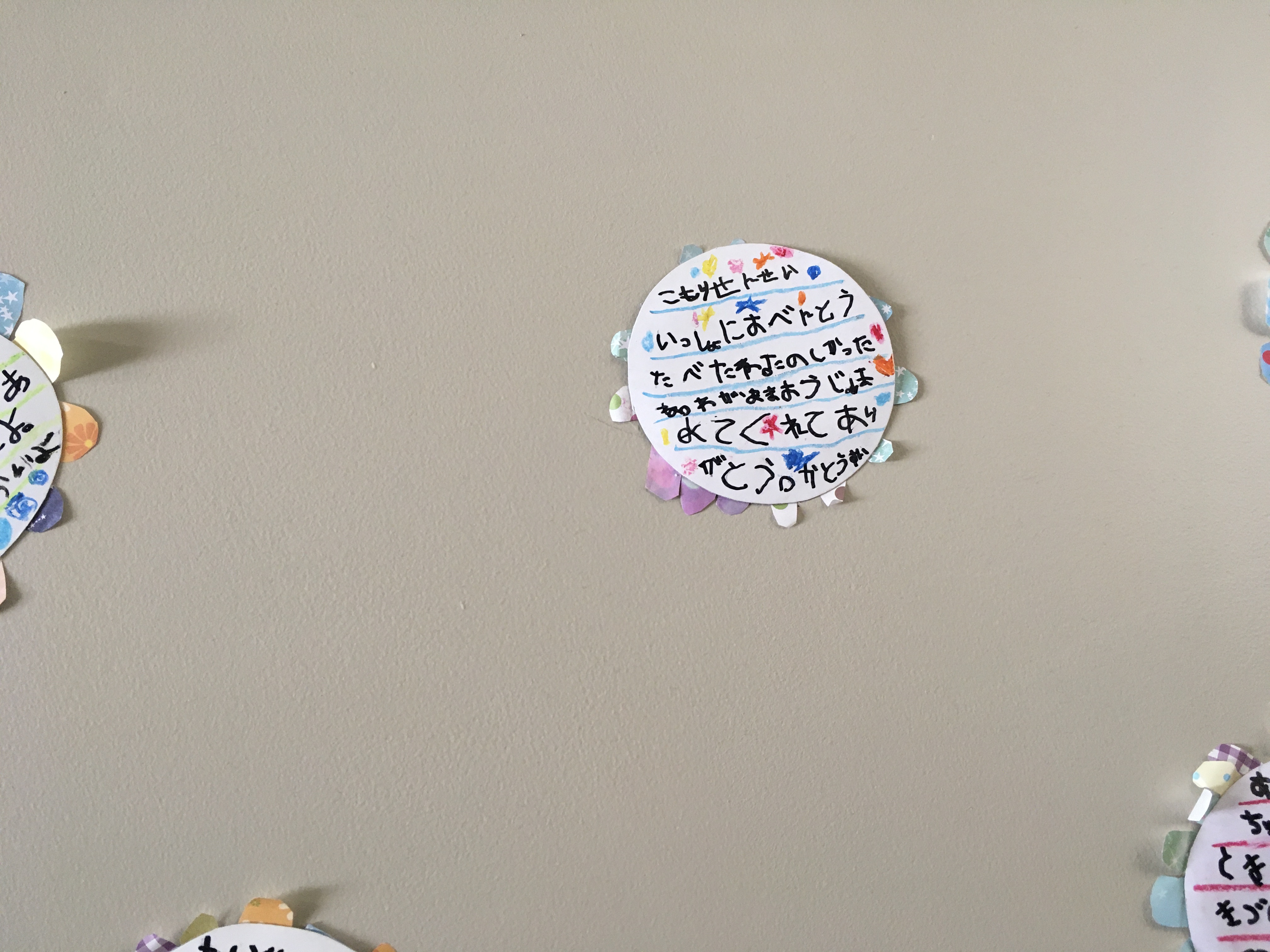 階段の壁には年長さんから先生達へのサプライズ!!ありがとうの花がたくさん散りばめられていて、本当に胸がいっぱいになりました。卒園の日、立派な年長さんの姿に会えるのが楽しみです。