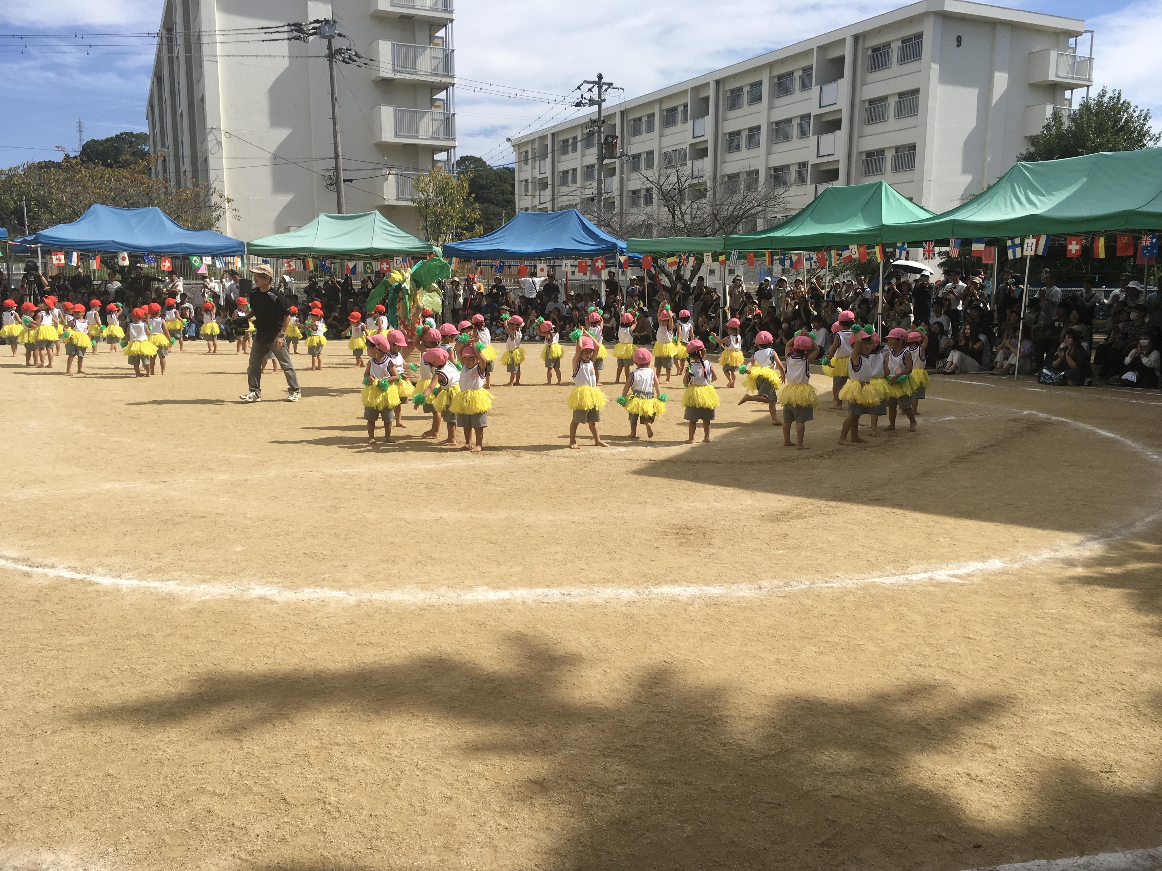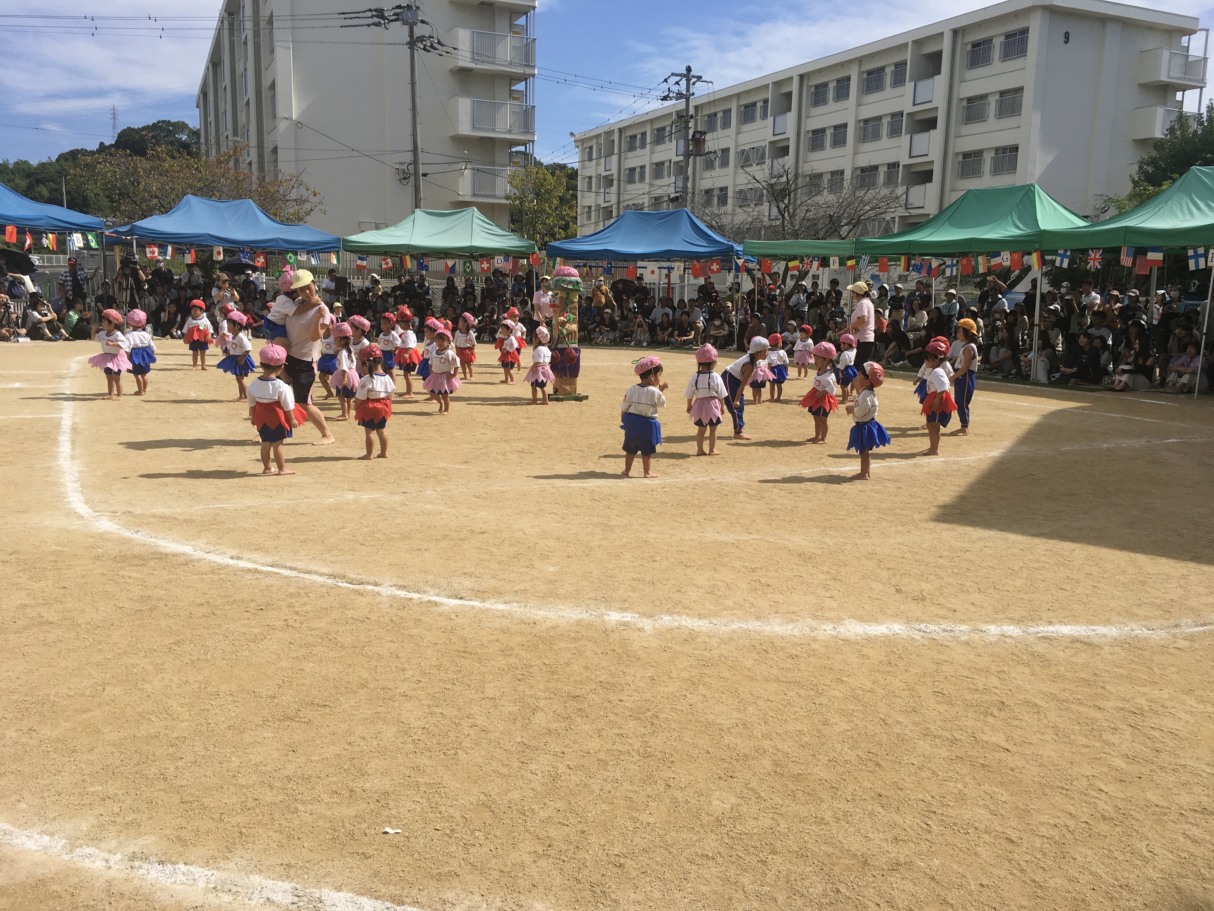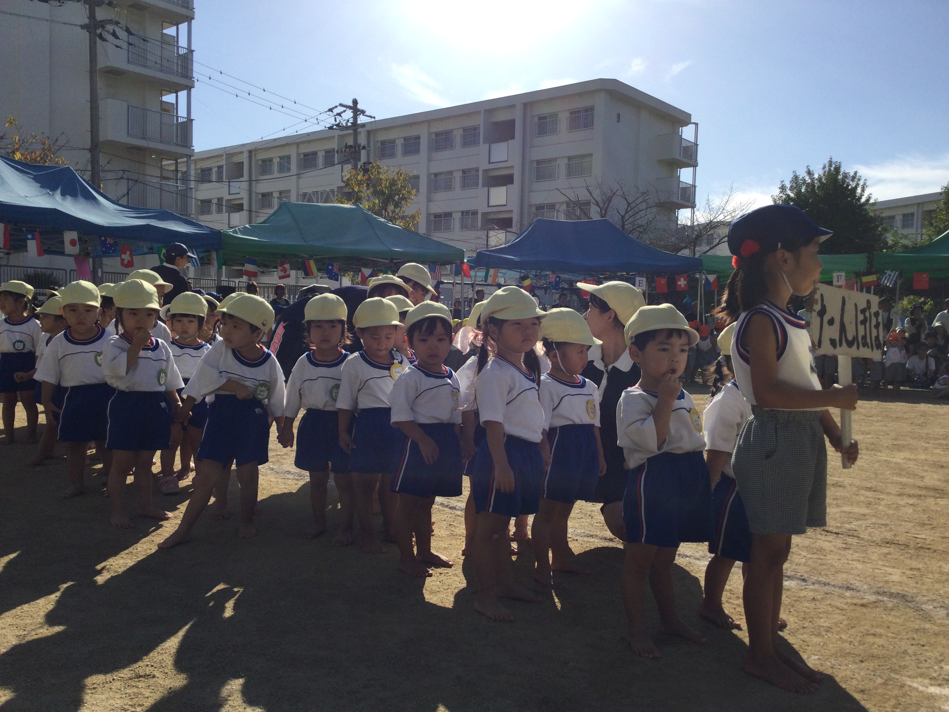 朝、登園してきた子どもたちが「明日は、運動会よね?」「今日しか練習できんって言いよったよ。」と話す声が聞こえてきました。また、一方では年長のIちゃんが「今日、鼓笛隊の練習を頑張って、明日見てもらうのが楽しみなの!!」と嬉しそうに話していました。