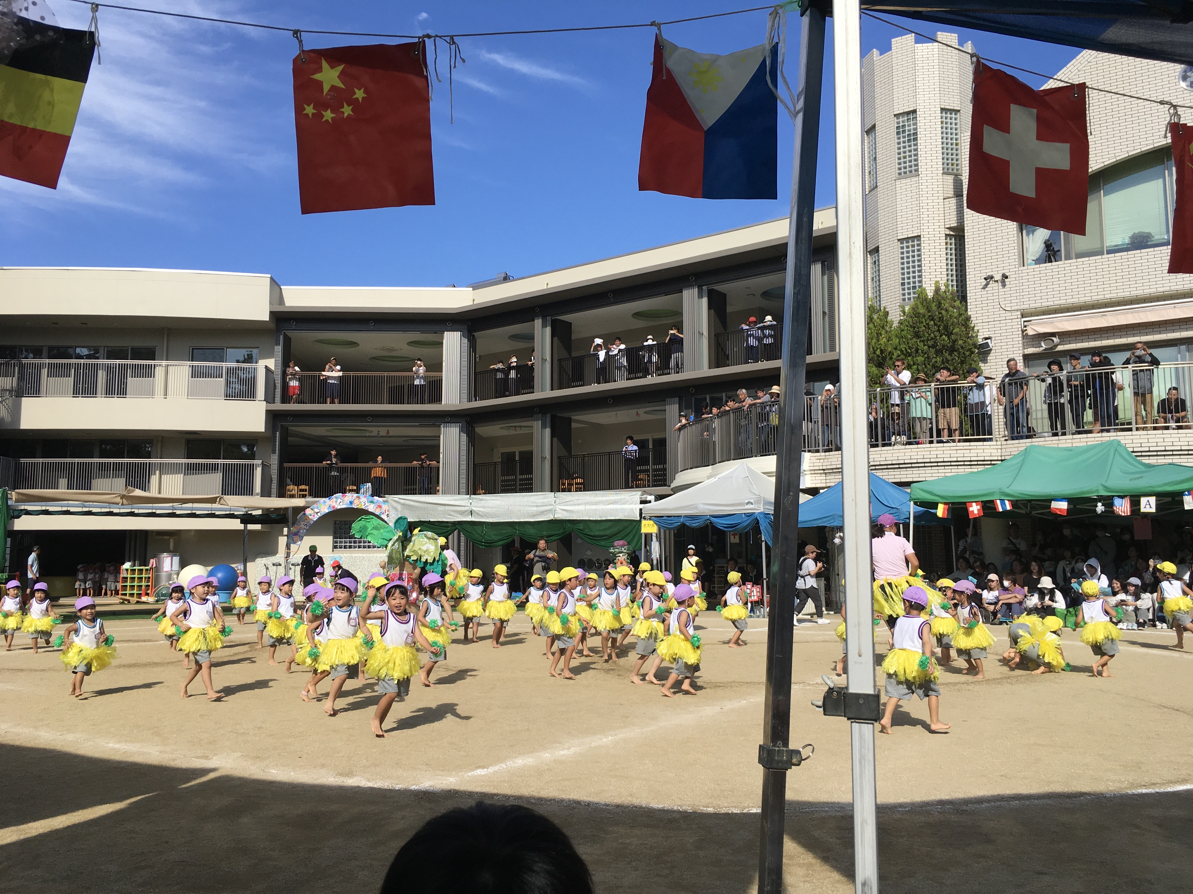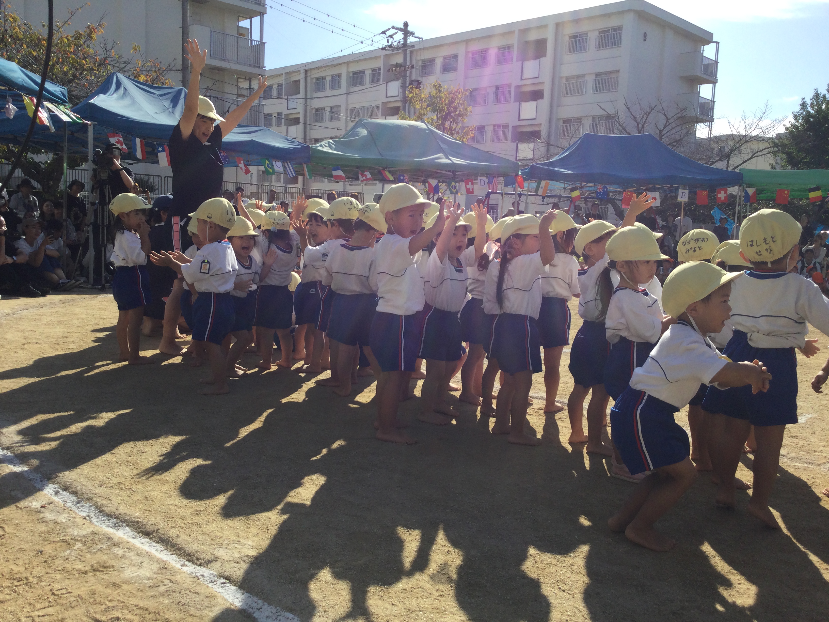 先週の金曜日、運動会を終えた子ども達はお休みの間、それぞれの家庭で運動会についての話題で盛り上がったようでまだまだ運動会の余韻を楽しんでいました。いつものように園庭に出ると「踊りの曲かけて〜」とやってくる子ども達。音楽がかかると色んな学年の子ども達が自然と集まってきました。年長児の組体操「あとひとつ」では、手話付きで少し難しい構成でしたが、踊り大好き年中児もよく見て覚えていて年長児の中に入って一緒に演技を楽しんでいました。年長児達は、年中児達が分かりやすいよう、カウントや掛け声が聞こえるように大きくはっきり声を出している様子が伺えました。今年の年長児達も昨年は年長児さん達(現在小学1年生)の姿に憧れてよく真似をしていました。1年の成長の大きさを改めて感じた1日でした。